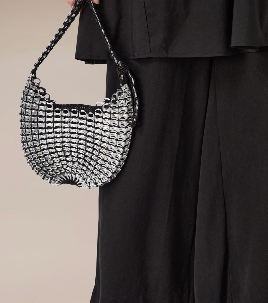 Another easy, subtle way to nod to armour is with a chainmail bag. Consider pairing your holiday partywear with one of these rather than your typical sequin bag — high-shine but with a rough and ready edge.