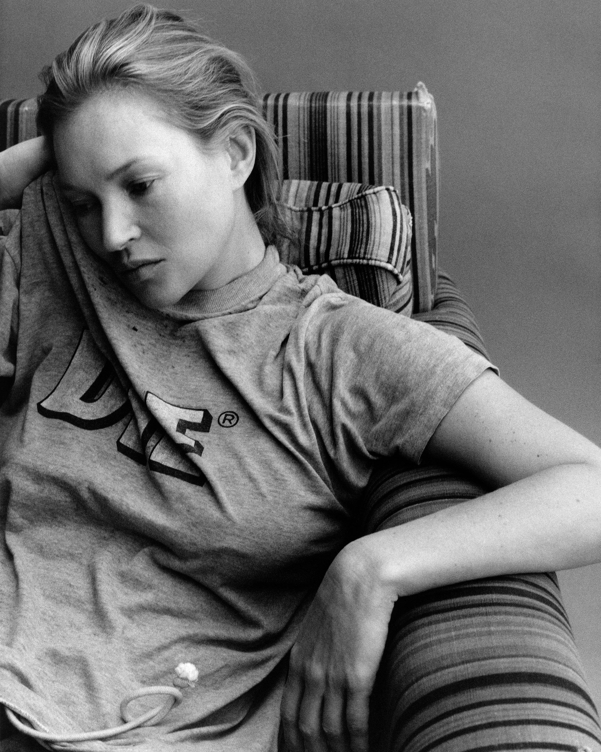 For i-D’s latest blockbuster print issue, themed “The Utopia In Dystopia,” Moss graces the cover in a smiley-print vintage T-shirt. Inside, you’ll find a rare Q&A with the model. The editorial, shot by cult photographer Jamie Hawkesworth, sees her relaxing in a striped armchair in a slew of collectible vintage T-shirts courtesy of stylist Max Pearmain’s personal collection. The tees range from a 1994 Jenny Holzer number to a 1999 piece from legendary hip hop collective and record label Ruff Ryders. For Moss, her most treasured possession is “an old Fleetwood Mac T-shirt.”