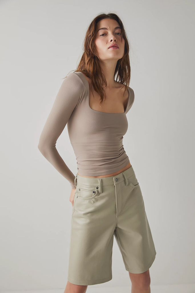 This second-skin top makes for a comfy layer under a cardigan or on its own. We would pair it with low-rise pants or a skirt, or tucked into a high-waisted bottom, for an off-duty ballerina look.