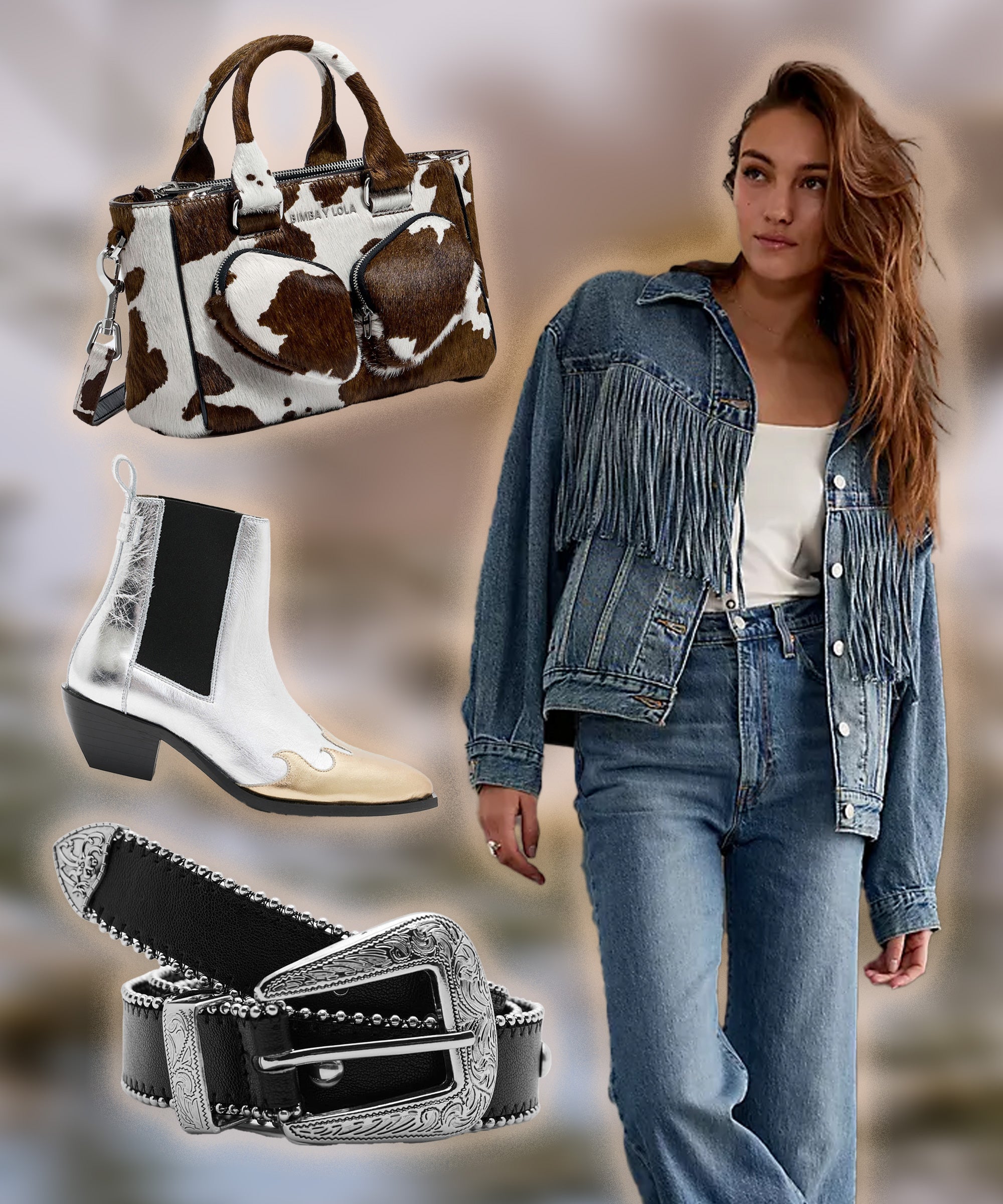 Single, double, or triple denim… anything goes when channelling your inner Cowboy Carter. Denim styling made a huge splash on the fall/winter 2024 runways and is probably the easiest Western aesthetic to integrate into your wardrobe. While the Canadian Tuxedo is your most classic approach, Western-inspired denim can also include fringed jackets, jumpsuits, and patchwork styles.