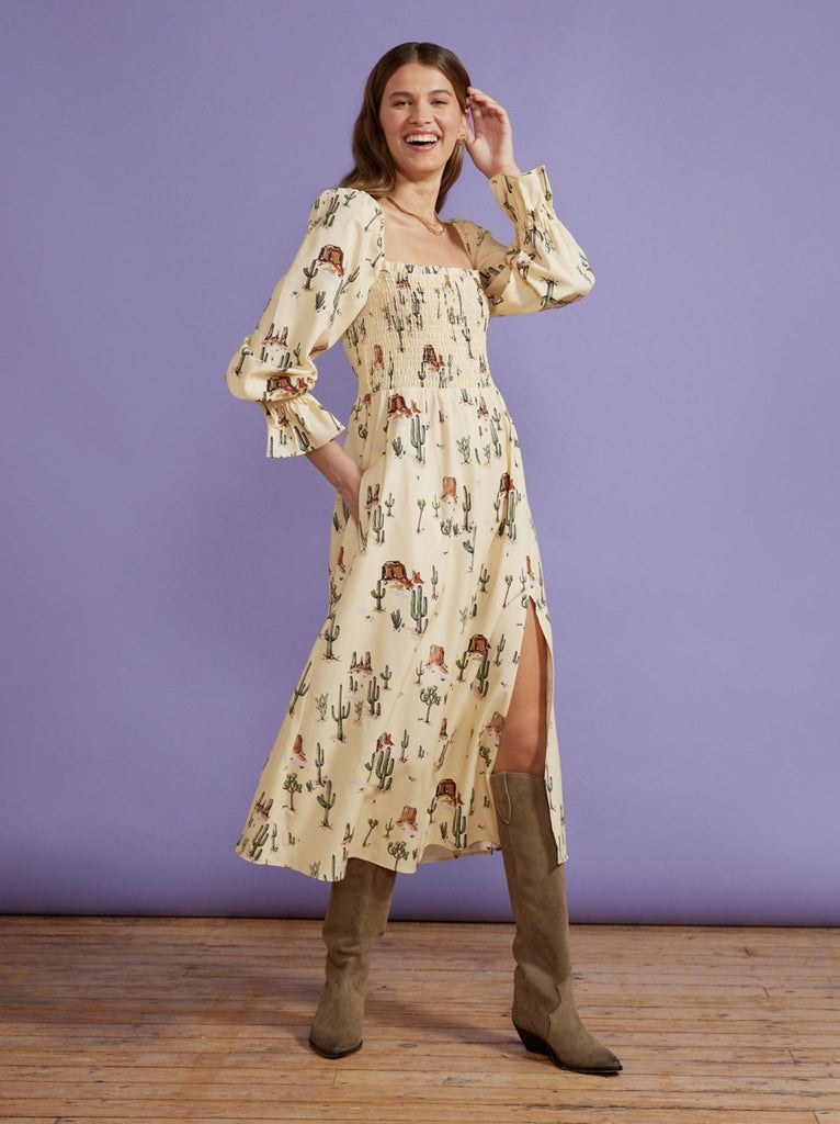 Prefer to take the obvious but quirky route? Let your clothes and accessories do the talking with cactus prints, cowboy graphics (preferably with rodeo-approved lingo), and cutesy motifs of horseshoes and Western boots. Next step? Hopping on a flight to Houston, Texas.