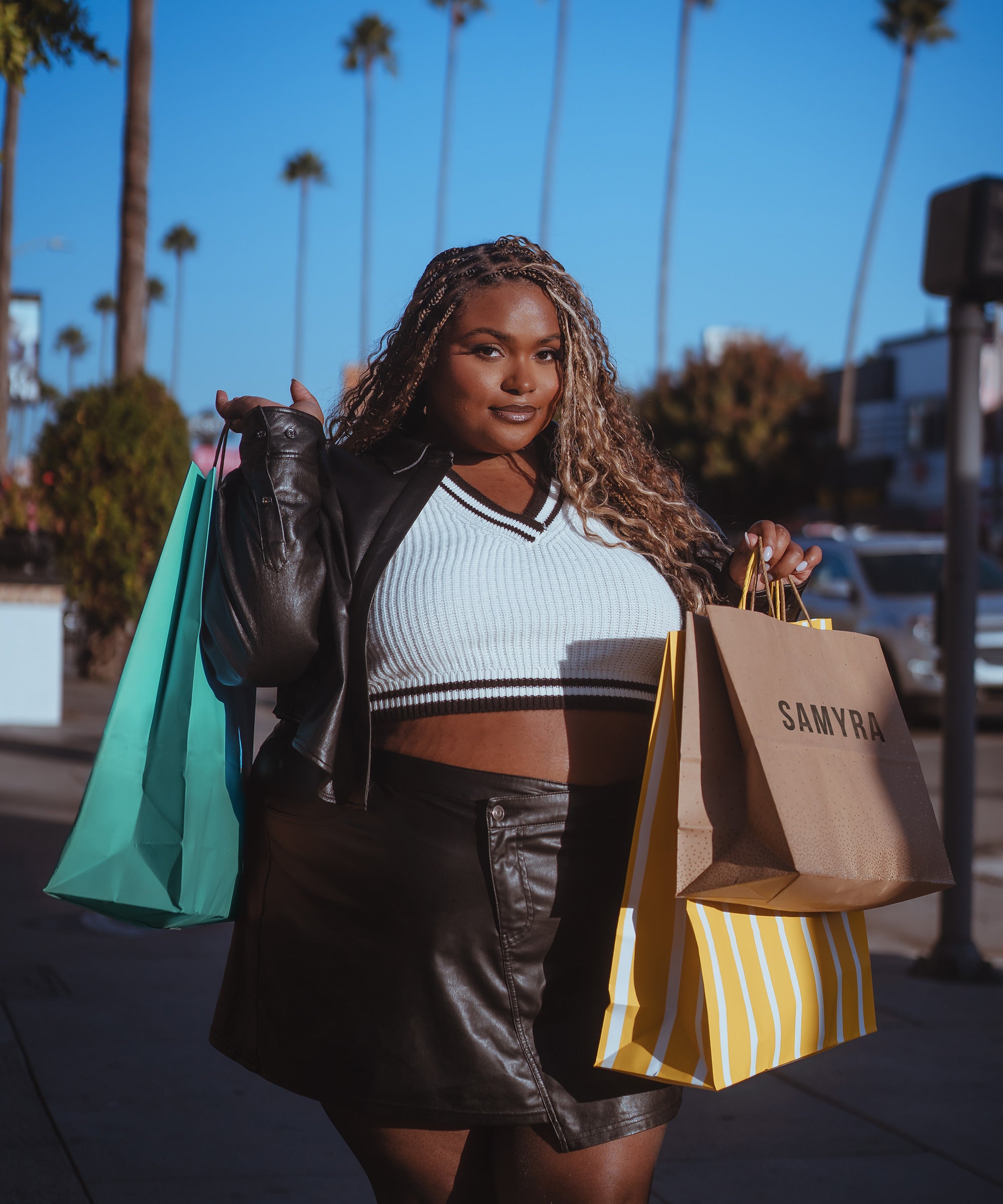 That is precisely where Samyra has aimed her attention, garnering a TikTok following of over 1.8 million people. Her audience looks to her to learn where they can shop and, more importantly, if the retail brands that claim inclusivity are truly following through on their promises. She regularly creates first-person vlogs that chronicle her search for plus sizes in top stores, describing the options available, what’s stocked in store versus online, how welcoming the overall experience feels, and more.