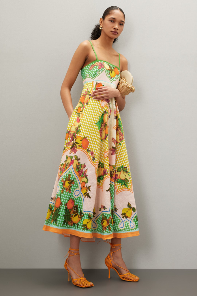 For all the backyard barbecues and park picnics you have in store this summer, look to Rent The Runway’s 90+ degree forecast roundup. For a very coquette picnic, opt for a playful fruit print, a corseted midi dress, or a straw tote bag. For a casual barbecue, opt for a denim jumpsuit, sherbet-colored shorts, or a gingham showstopper. Some of these hot-weather statement styles would also work for graduation parties, bridal showers, and weekend brunches.