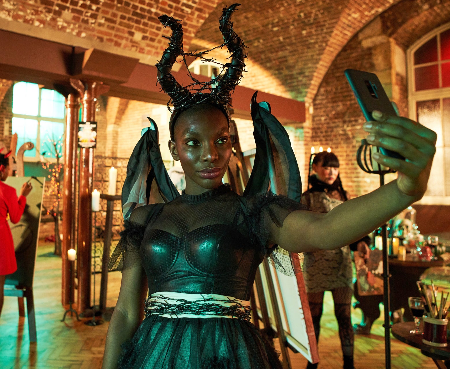 Patterned cardigans and baby pink hair collide on I May Destroy You’s Michaela Coel, who plays Arabella on the hit drama series that she created. According to Lyst, during the show’s airtime between June and September, Arabella’s ‘90s-inspired cardigans caused a 43% spike in search for the knitwear staple. Her feathered outerwear and Champion sweatsuits are worth mentioning as well, as is her incredible dark angel costume from the Halloween episode, which included Maleficent-inspired horns and a mini dress from ASOS.Photo: Courtesy of HBO.