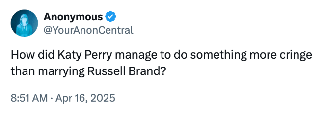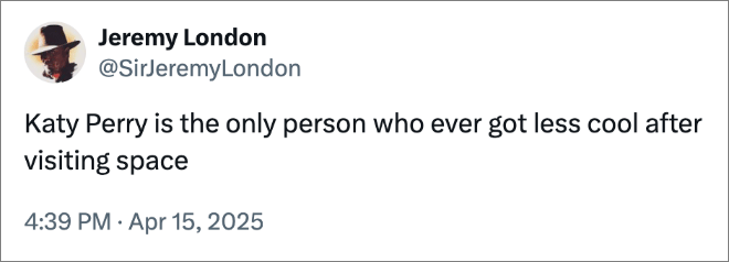 The post Funniest Katy Perry Space Flight Memes And Reactions first appeared on Sad and Useless Humor.
