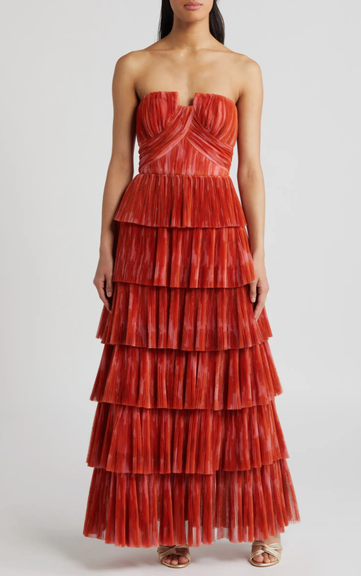 Hutch Simi Plissé Ruffle Strapless Gown, $, available at Nordstrom