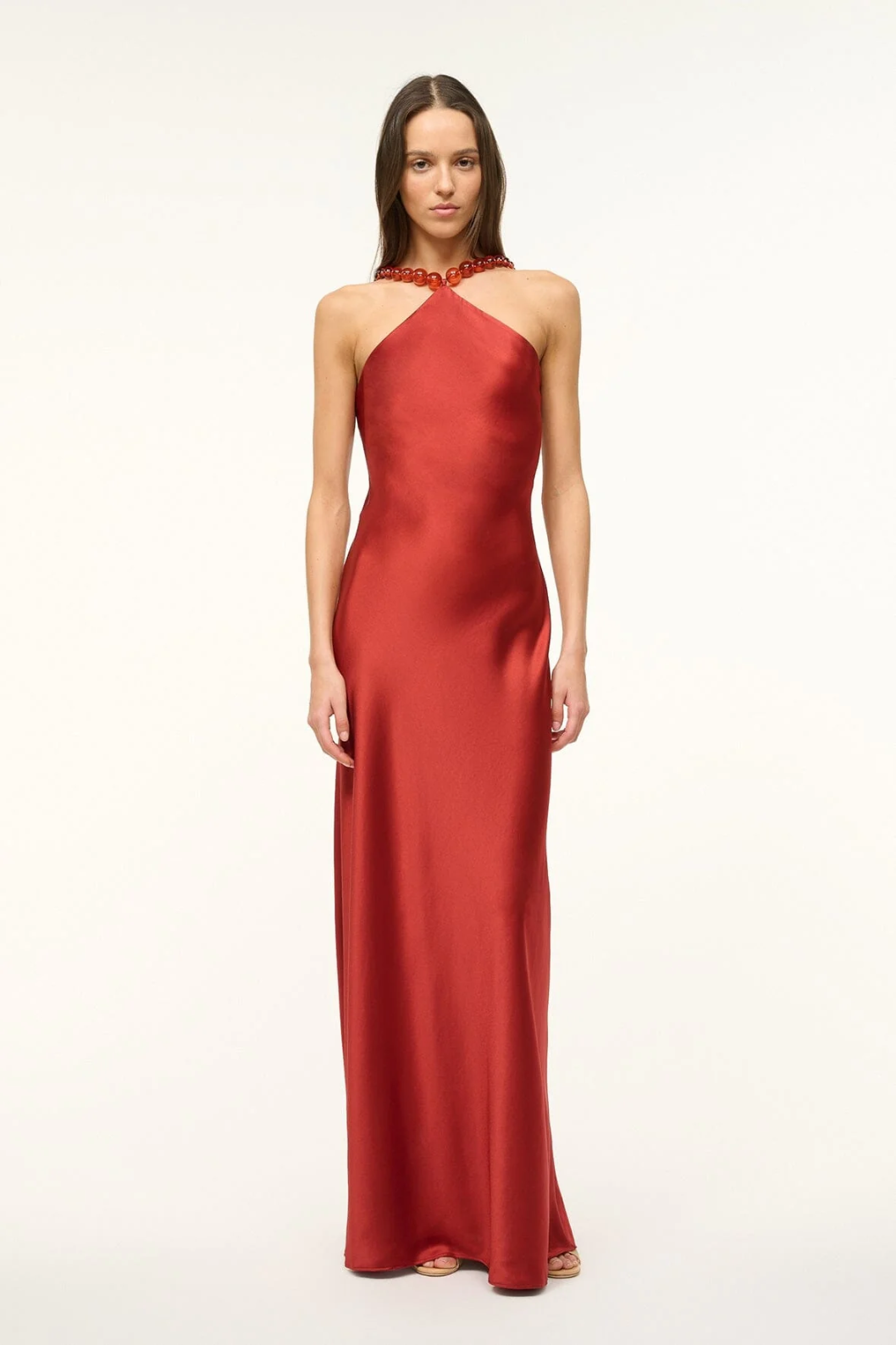Norma Kamali Bias-Cut Satin Halter Gown, $, available at Saks Fifth Avenue
