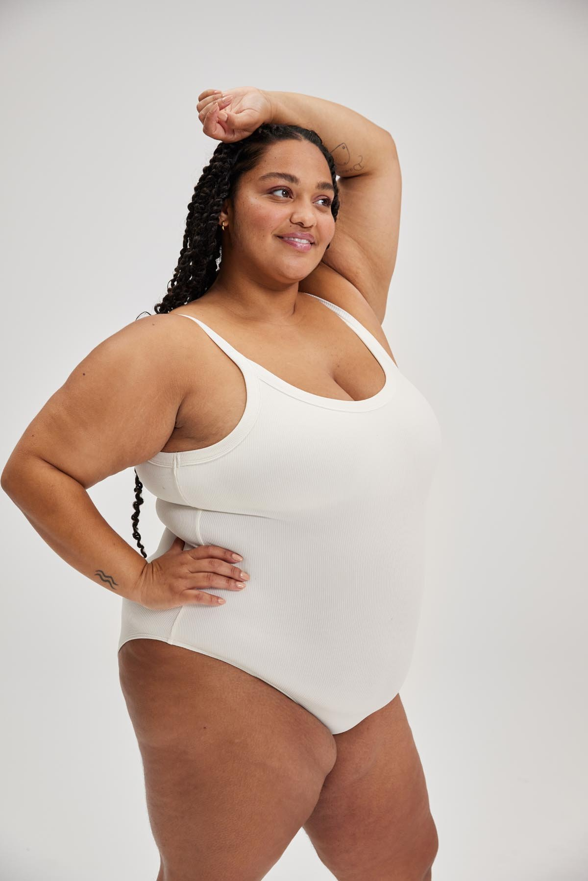 Unlike the Scoop above, the Girlfriend Collective High Neck Bodysuit boasts adjustable spaghetti straps — with the halter-style neckline sitting much higher and a backside that runs straight across. It also comes with a built-in bra and the option to choose a brief or thong bottom.