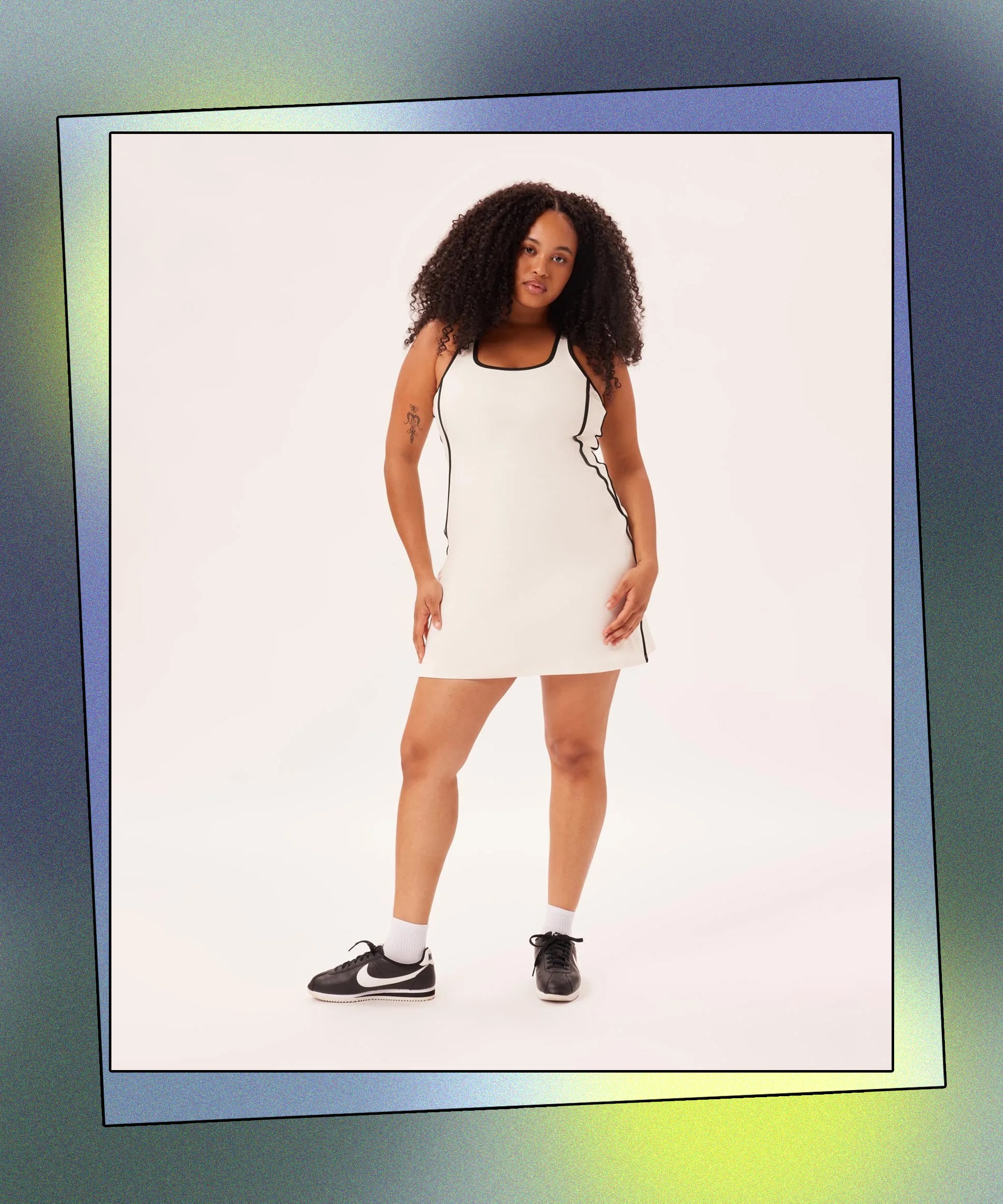 The Racket Collection has 15 pieces ranging from $14 to $128 and includes sports bras, dresses, a windbreaker, and vintage-inspired accessories like a visor and sweatbands. Most pieces run from XXS-6XL, though some sizes are already in low stock. While the pieces are great for channeling your inners Williams sister, they are performance-focused as well. The workout skirts and dresses have shorts underneath, complete with pockets for storing your spare ball. A few pieces are also SPF-rated for added sun protection during long practice sessions on the court. And we can never overlook the form-meets-function appeal of a handy sweatband.