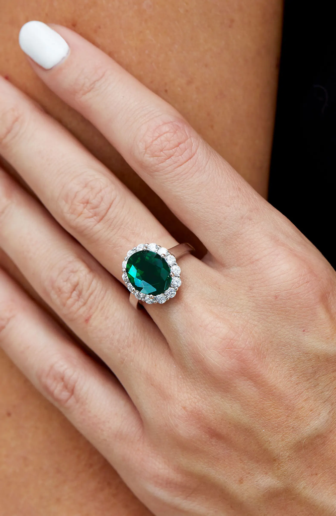 Go bling or go home with a dramatic cocktail ring surrounded by an oval halo of sparkly cubic zirconia stones.