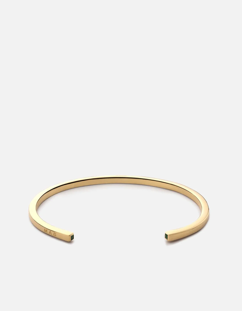 This geometric gold vermeil cuff is bookended with teeny-tiny emerald stones and can even be monogrammed for a just-for-you touch.