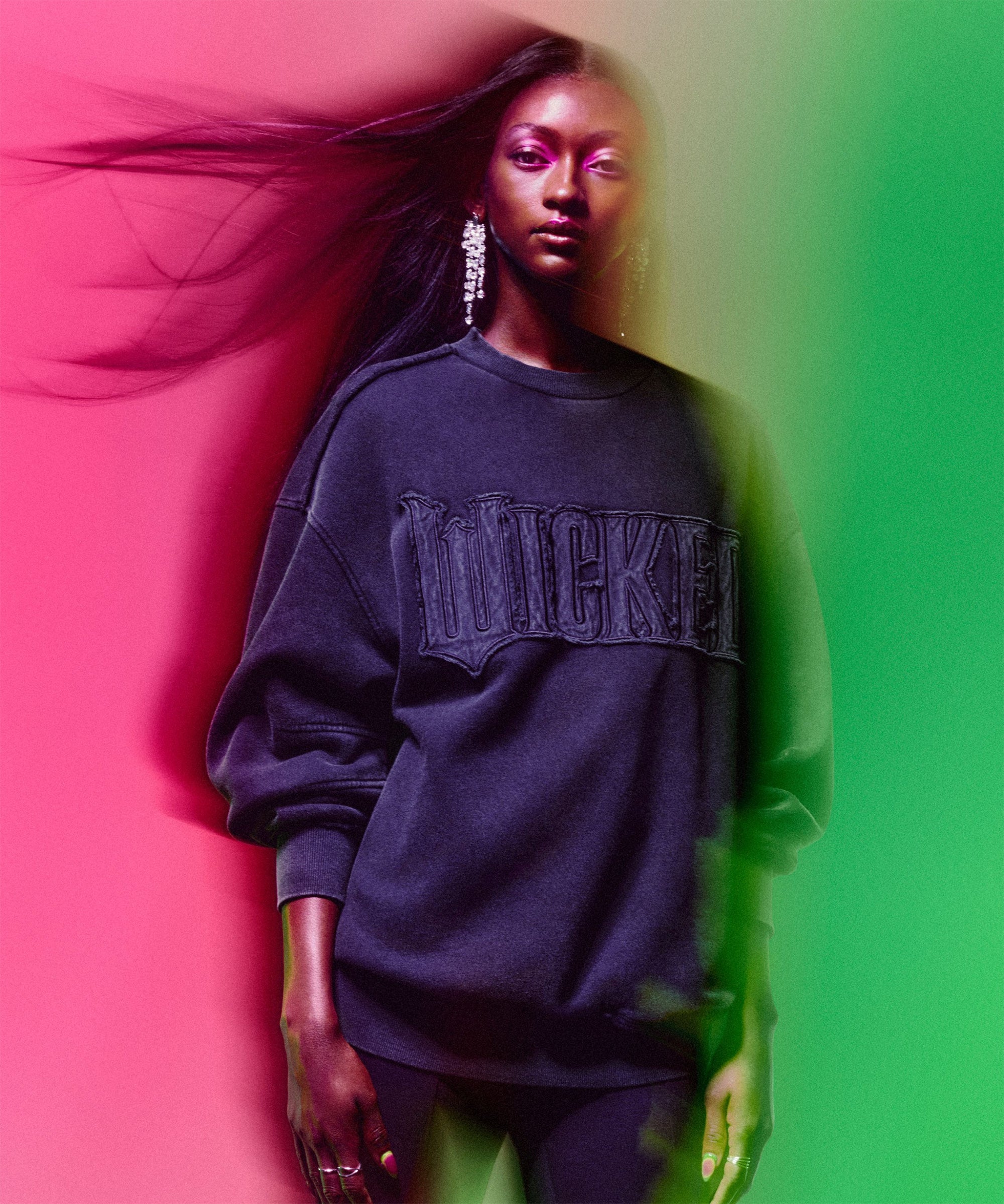 Inspired by the two main characters, the retailer’s 12-piece Wicked collection has styles you can wear to the theater (graphic T-shirts and logo sweatshirts that you can cozy up in all spooky season long), plus pieces that your favorite Ozians might even wear themselves (such as an asymmetric mini-dress, sharp-shouldered blazer, and curvy handbag that can make any fall outfit more chic, not kitsch). If you were already planning a Wicked-themed Halloween costume, cart up the black corset to wear as Elphaba or the chandelier earrings for Glinda. Prices range between $9.99 and $59.99.