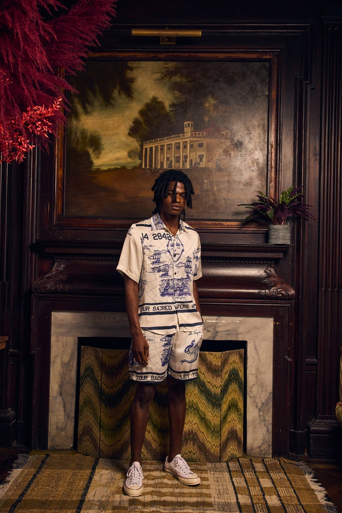 At their New York Fashion Week presentation-show hybrid, a sailor leader, flying the Camp Aama flag, opened the show. Next, there were the party-ready twins dressed in matching blue and pink halter dresses. Meanwhile, “beachgoers,” made up of a majority-Black model lineup, hung out together in bikinis and Camp Aama towels. “For us, there’s an item for everyone,” says Shabak. “There’s swim, there’s towels, there’s a bag, there’s jackets, there’s sweatshirts. These are the different components that would build the community.”