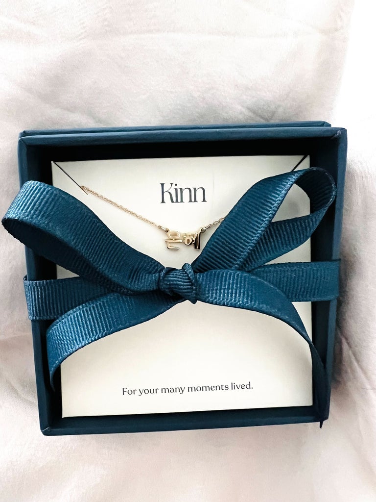 Since all of the pieces are delicate, Kinn’s jewelry easily be layered with other dainty necklaces for a stylish look. That is certainly true for the Dear Kaia III Nameplate Necklace — the subtle piece is eye-catching and a daily reminder to be proud of your name. The brand describes it as, “an ode to immigrant families and the many challenges they’ve had to face while building their life in America.” Yoon also cites her own experience as an inspiration for the piece, since she went from being called 혜정 (Hye-Jung) to Jennie when she moved to the U.S. The deeper meaning behind the necklace definitely resonates; when I showed my parents my necklace they were so surprised to see my Korean name, and my dad even had tears in his eyes.