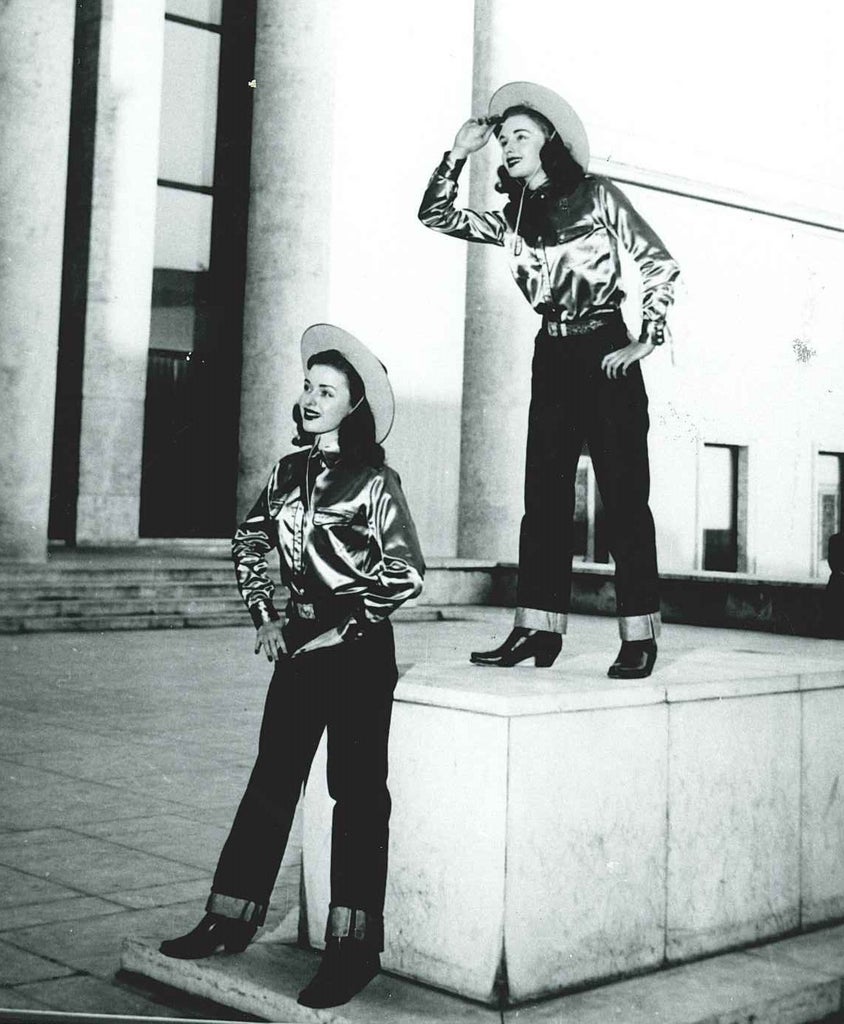 Take, for example, the 701s, a now-retired lot number that referred to the original women’s version of the 501 jeans. According to Panek, this model came as a result of women wearing the 501s, which she says were probably borrowed from family members, to ride horses and perform other daily activities in the American West. When Levi’s took notice, they released “Lady Levi’s” in 1934. A decade later, the jeans had their first true fashion moment when they appeared in a fashion show in Paris, titled “Fashion Flight,” on twins and Levi’s models Patricia and Priscilla Emery. In 1981, the 701s were folded into the 501 umbrella, with styles for men and women.