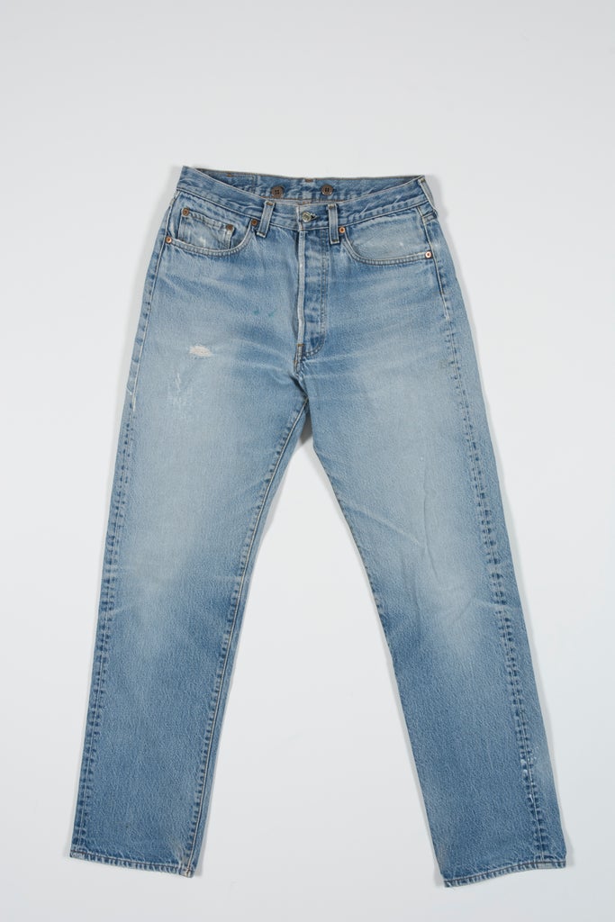 Over time, the 501 further transformed in response to social customs and customer feedback: In 1937, the rivets on the back pockets, which were originally placed outside of the jeans, were moved to the inside after Levi’s heard complaints about the metal scratching people’s furniture. The Levi’s 501 underwent the biggest makeover during World War II, though, when the government enacted material rations that led the company to remove rivets from the crotch and watch pocket and replace branded buttons with generic ones. Soon after, the company took out the back cinch and stitched the back pocket with the diamond shape we know today.