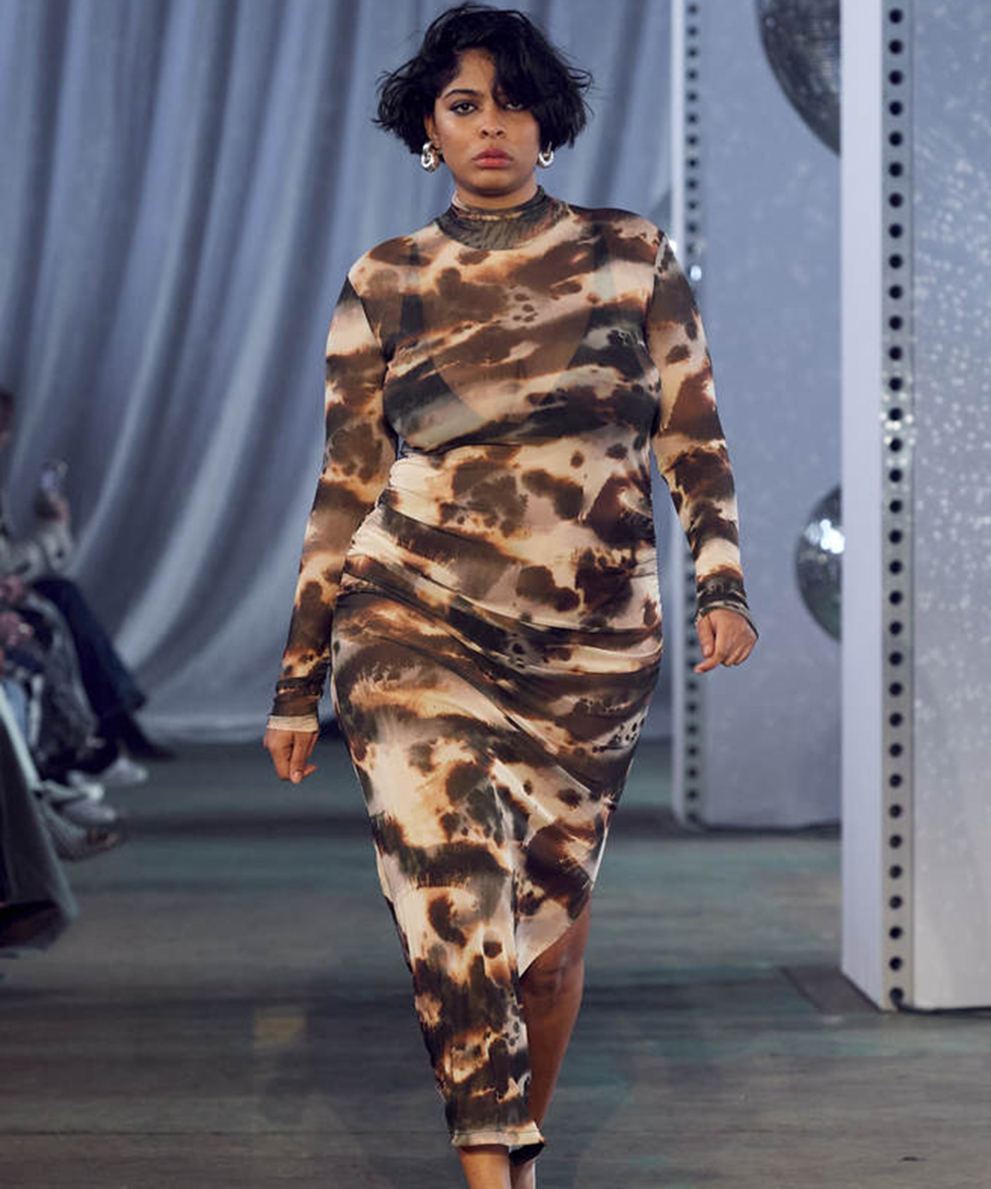 For the most recent collection — which Sehested called “the best collection we ever have made” — Gestuz doubled down on the sentiment, blurring the line between going-out wear and business-core because, as the press release read: “Why save the fun for rare occasions?” This translated into rebellious pieces like a denim set with a cinched waist, blazers worn over sheer skirts and briefs, and pinstripe pants paired with a chainmail top, an aesthetic that Sehested, who is constantly inspired by the ‘70s and ‘80s music, describes as “eternal rock and roll but in a more mature way.”