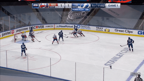 So Tampa carries on with two things on their next power play. The continue to establish the top as a shooting threat…