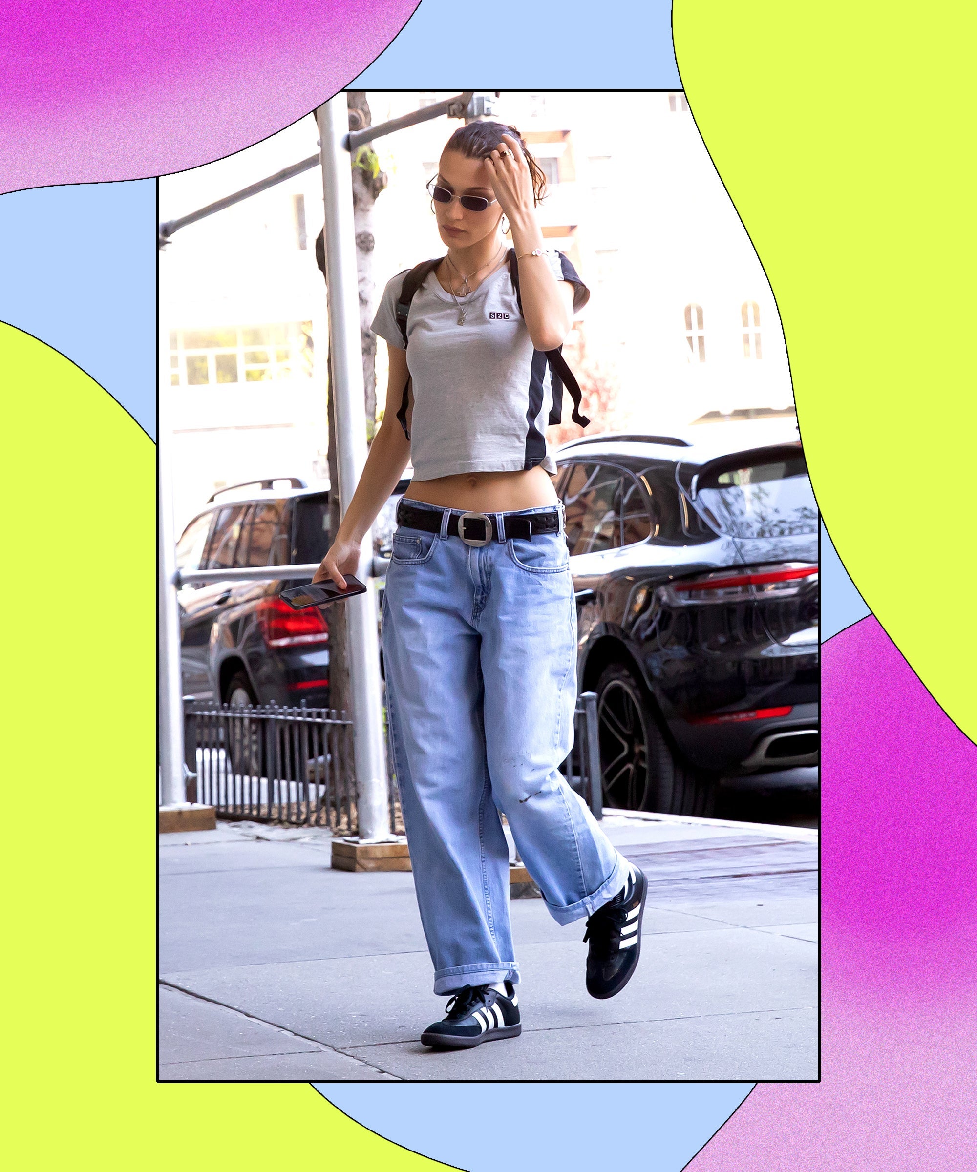 On Instagram, Lyn is among a generation of influencers who are incorporating the versatile sneaker into Y2K looks, complete with mini skirts, baggy pants, and bustiers (all of which are ways Hadid has also chosen to style her Sambas over the last year). “It’s a great way to dress down a dress or skirt,” says Lyn. “My go-to is probably with some baggy low-waisted trousers and tank top, something casual.”