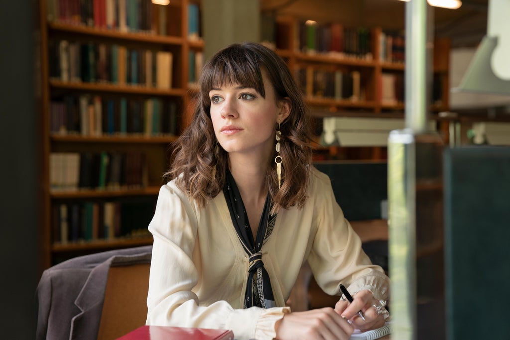 That same sense of individuality continues to play out when she goes away to Trinity College, where her look evolves. When Marianne sees Connell for the first time since leaving high school, where they had a falling out, she is no longer makeup-free. Gone are her laid-back outfits, too. Instead, she’s mastered a smudged smokey eye and discovered an affinity for accessories, including a covetable silk neck scarf and some serious baubles. She looks confident and grown-up, no longer the reserved girl she was in high school.