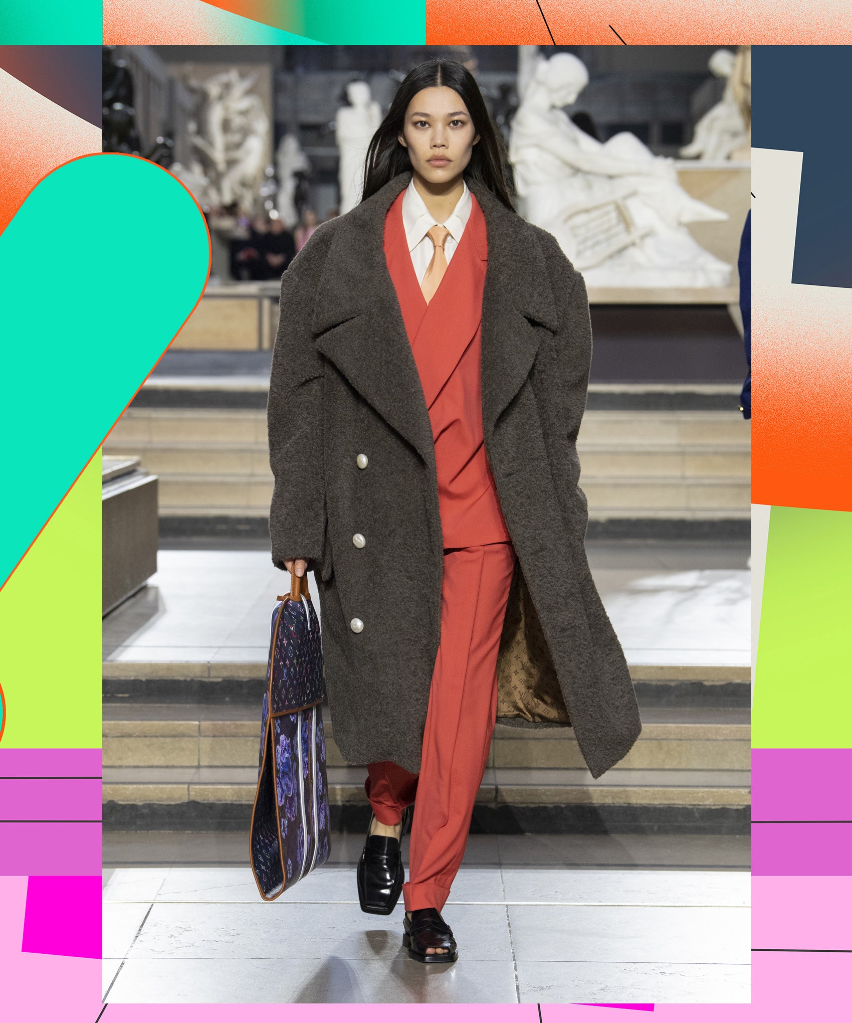 Brands like Saint Laurent, Givenchy, Bottega Veneta, and Alaia are making menswear-inspired tailoring a top trend this season, with both structured and oversized, relaxed looks that take the meaning of “power suit” to a new level. The silky tuxedos shown at Givenchy and Proenza Schouler, for example, make for a perfect day-to-night outfit. Meanwhile, the Louis Vuitton and Ralph Lauren lineups saw many ties added to monochrome suits and blazer looks.