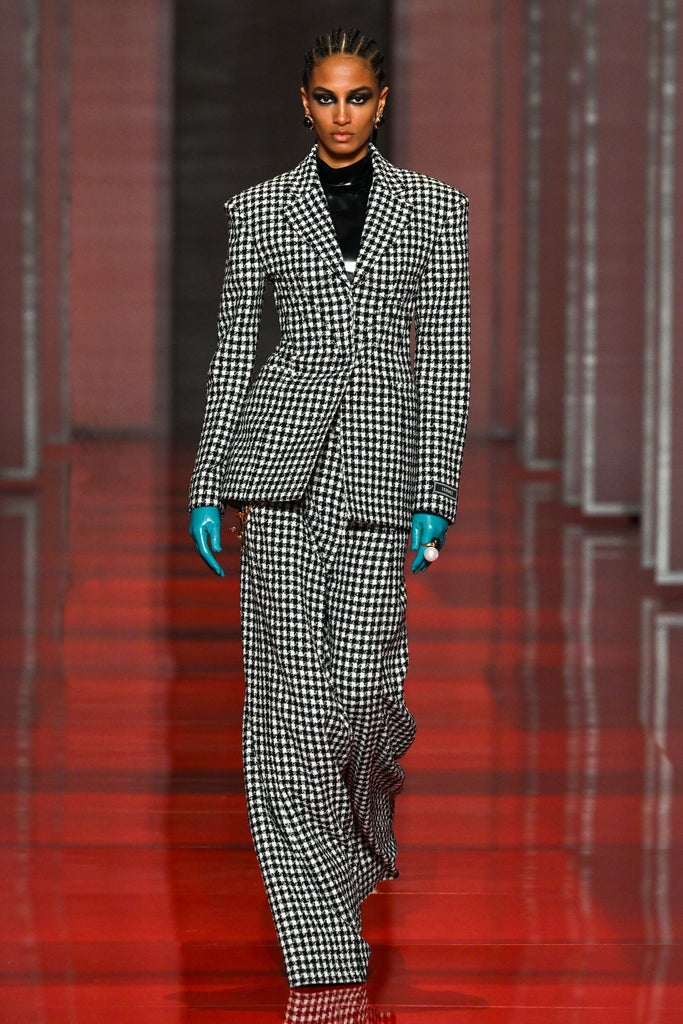 The fall runways were full of sets that looked nothing like the gentlemen’s suits from the 19th and 20th centuries. Instead, they were styled and accessorized in ways that brought modernity and personality to the looks, with baseball caps, skinny ties, ruffled shirts, bedazzled details, and beyond. Jazmine Motley-Maddox says this is key when it comes to trying out menswear-inspired tailoring. “Have fun and make it young,” she says, suggesting layering pearls, adding a corset, or going for a funky print, like tie-dye as good ways to personalize the ever-classic trend. Hirshleifer also recommends adding jewelry: “If I’m wearing something super masculine, I will pair it with more refined, feminine jewelry.”
