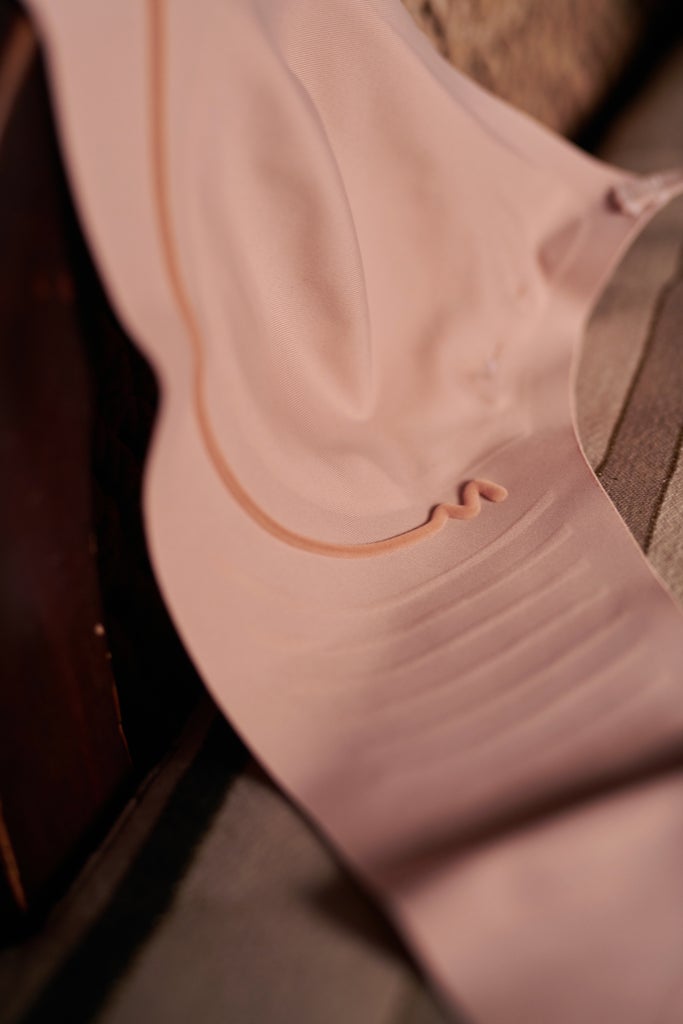 I was given a sample of the black Only Bra, and I was immediately in awe of the material. It’s so soft and silky. And while the paper-thin fabric looks and feels delicate, it’s actually pretty sturdy and durable. It’s also very flexible: I can fold and roll it all up in any direction without denting the lightly padded cups. Plus, there are small slits on the inside of the bra, where the pads can be removed if desired. I also really like that the silicon-flocked softwire has a velvety finish. It’s not like the rubbery silicone I’m used to finding on slip-proof undergarments or shapewear that stick to and dig into my skin.