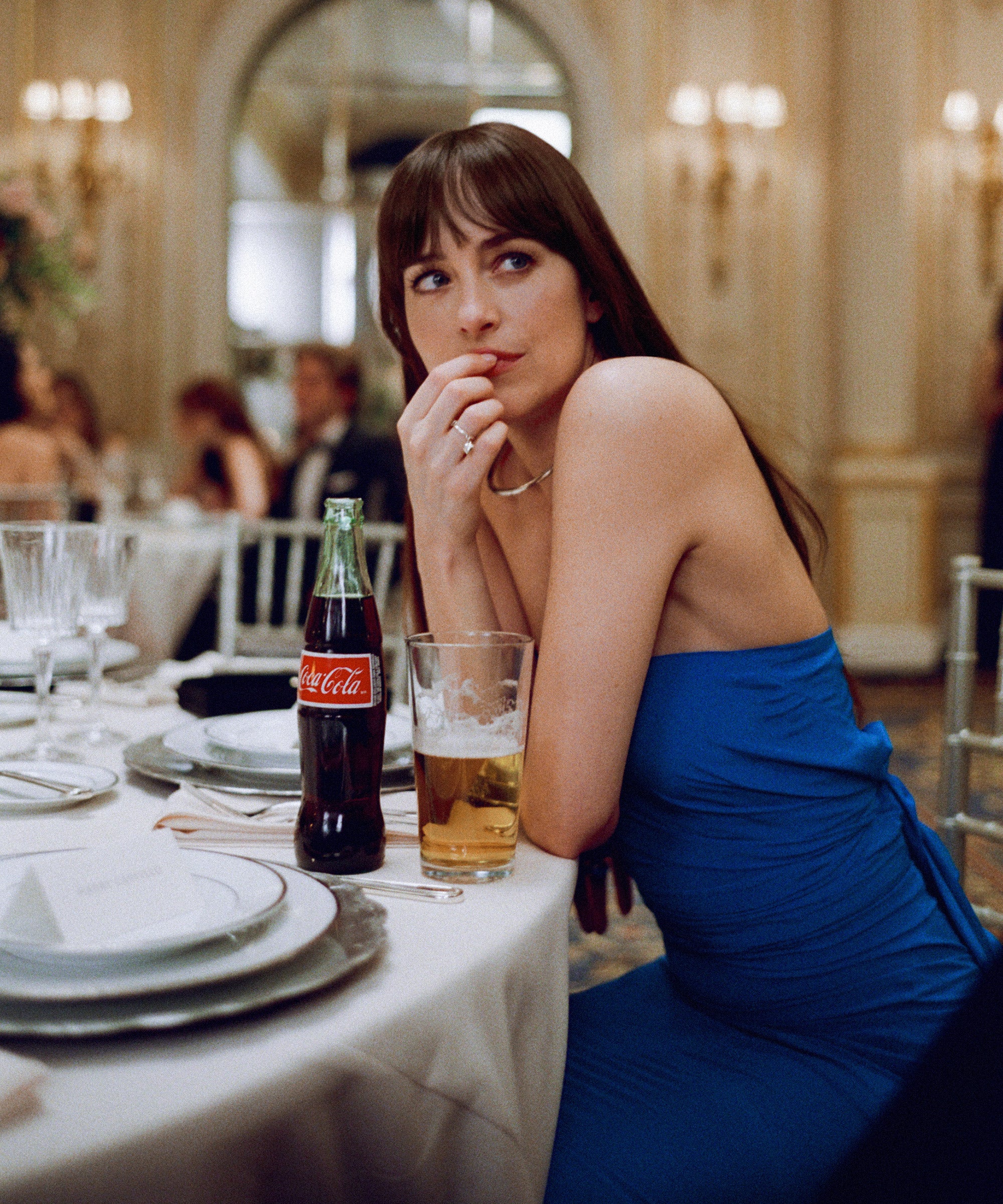 “It was important to convey that [Lucy] wasn’t stealing anyone’s shine when it came to her clients. It has to be professional, and appeal to a high-end clientele,” Danabassis, who led costume design for Song’s last (and very different) love-triangle film, Past Lives. “When you’re millionaire matchmaking, you have to look the part. But also not come across as someone who’s necessarily available.”