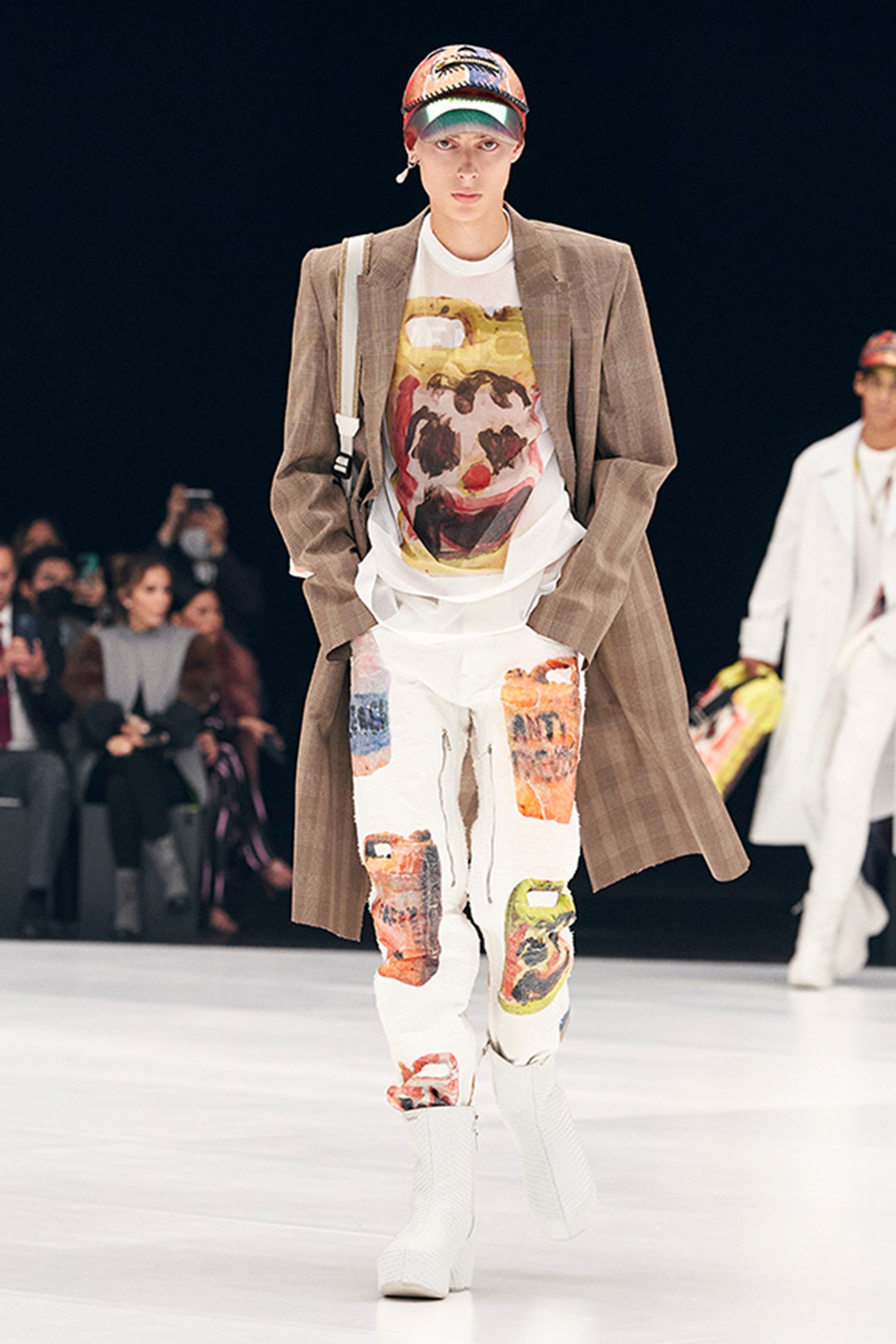 Beyond TikTok, the aesthetic has taken over runways. From Dior to Undercover and Rick Owens and Nanushka, high-fashion brands showed elements of the clown aesthetic for Fall 2021, whether in the form of harlequin prints or motifs that recalled bright red noses. Givenchy’s and Saint Sintra’s Spring 2022 collections took it quite literally with clown-like prints, textures, and colors.