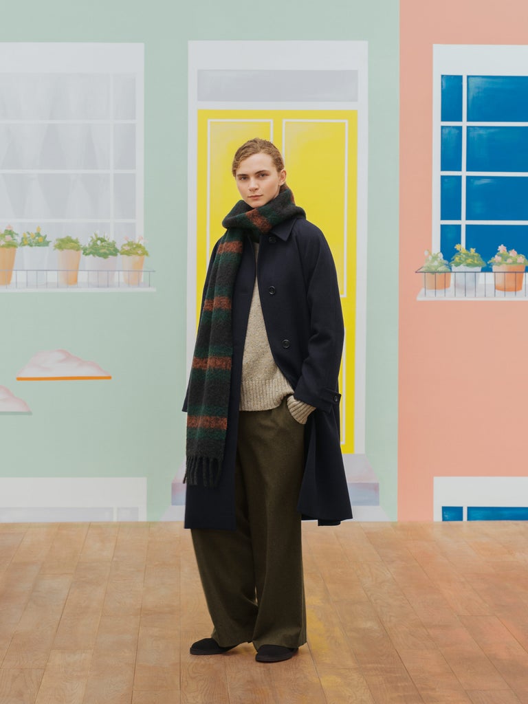Inspired as they are by the city’s diversity and eclecticism, Anderson’s Uniqlo collections never demand attention: “They never shout ‘I’m here!’ They’re very cerebral pieces and could be incorporated into everyone’s wardrobe.” From the very first collection in the ongoing partnership, Anderson has pushed the idea of accessibility, not just in the pricing — a boon for fans of JW Anderson who don’t have a luxury budget — but also in the pieces’ wearability. From Paddington Bear duffel coats — “He’s a British icon” — to striped socks and crew-neck sweaters, every item could be worn by any member of a modern-day family: “There’s something in the idea of ‘normal’ which I find incredibly important when designing a timeless piece. I latch onto them because they’re humbling and universal.”