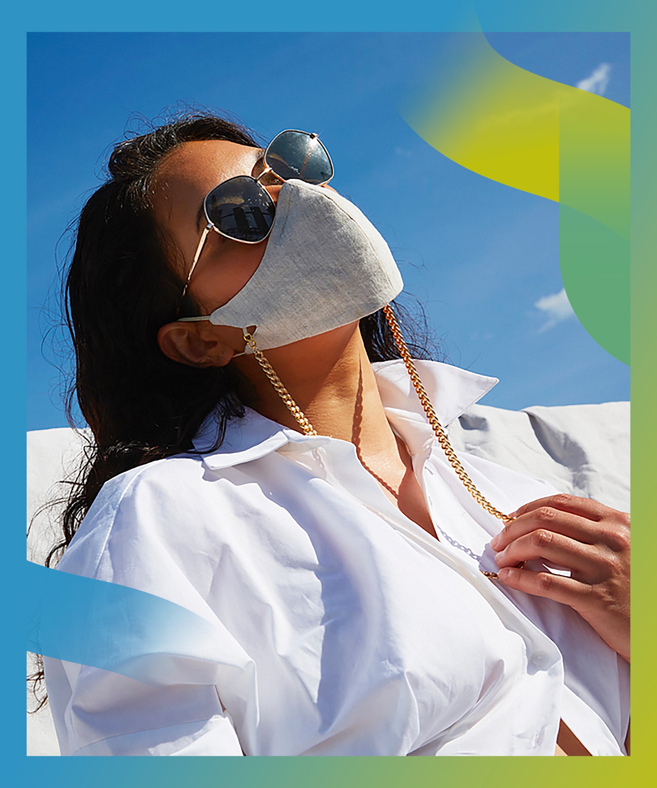 Called the Tina, Second Wind’s mask is made of linen and comes in four colors. With each style comes a gold chain, which shoppers can swap out for other accessories like lucite and tortoiseshell chains. Perez also released two other masks: the Janie and the Marina. All three styles are currently sold-out.