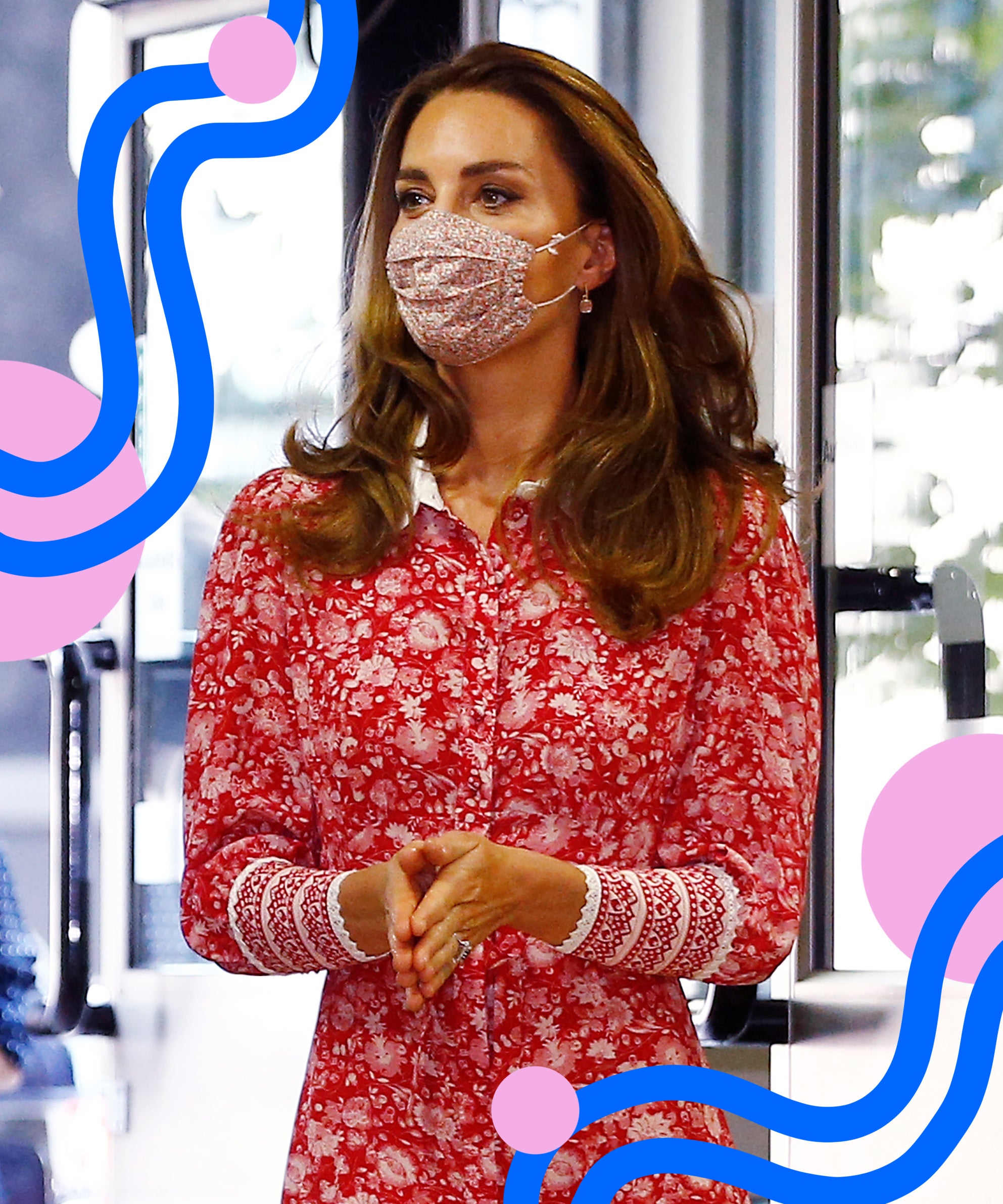 Her floral face mask, designed by a London childrenswear brand called Amaia, was also recycled from a previous outing. In early August, during a visit to Baby Basics, an organization that helps to supply clothing, food, and other essentials to children in need, Middleton paired the “Liberty Pepper” mask with a white silk Suzannah shirtdress and Tabitha Simmons Dela heels. In the 24 hours that followed, searches for “floral face mask” in the U.K. surged 185%, according to fashion search engine Lyst. So, we can’t really blame her for keeping the mask on rotation, nor would we dare to.
