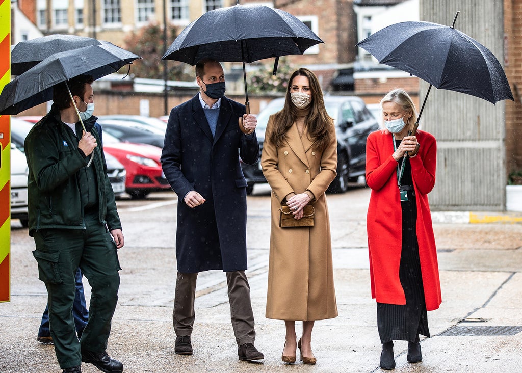 While meeting with paramedics and ambulance staff from Newham Ambulance Station, Middleton chose a double-breasted, camel coat — which she’s previously worn on a number of occasions, including to a visit at the Ely and Careau Children’s Centre in Wales in January 2020 — from Spanish fashion brand Massimo Dutti. With it, she sported a Reiss turtleneck in a near-exact shade and a handbag from Métier. To complete the look, she added citrine drop earrings from Kiki McDonough and a floral face mask from her go-to brand Amaia. Once again, the Duchess of Cambridge proved that sticking to one shade is a tried-and-true recipe for (sartorial) success.