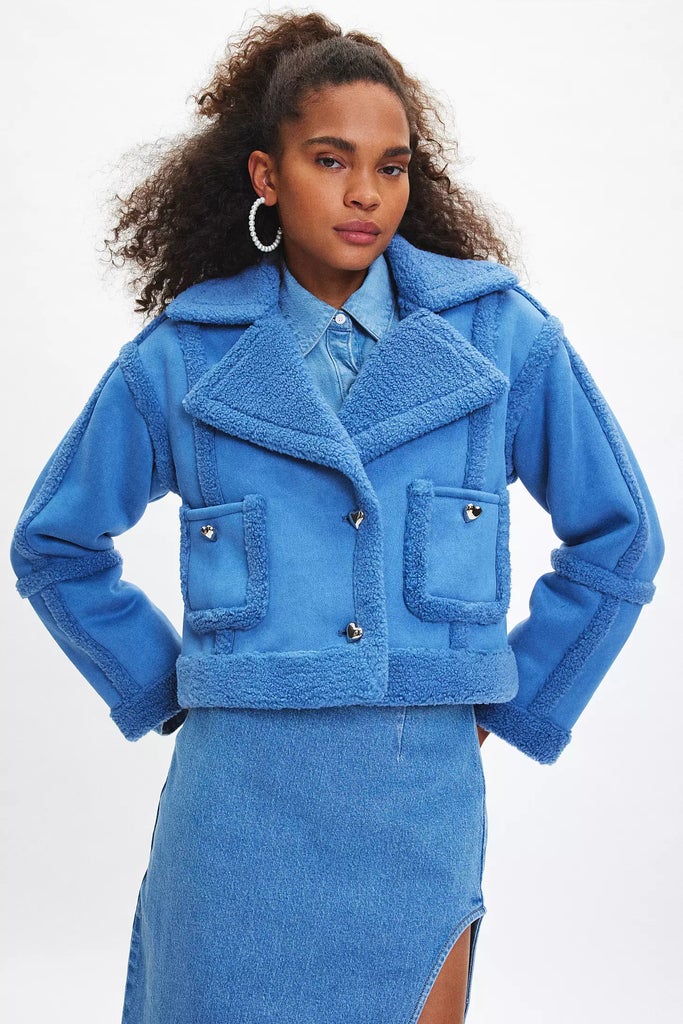 Suede jackets are stepping it up with fun, vibrant shades this winter, like Urban Outfitters’ cobalt blue style. A classic refreshed for those who like their layers with a little more personality.