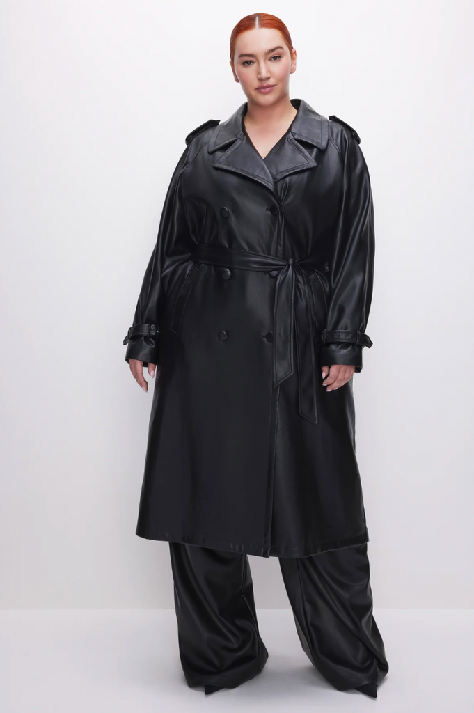 It’s the winter jacket with attitude. The coat that refuses bulk. The trench for entering the Matrix. If voluminous outer layers aren’t your thing, perhaps the sleek and streamlined faux leather trench will be. Just add a pair of shades for serving extra sass.