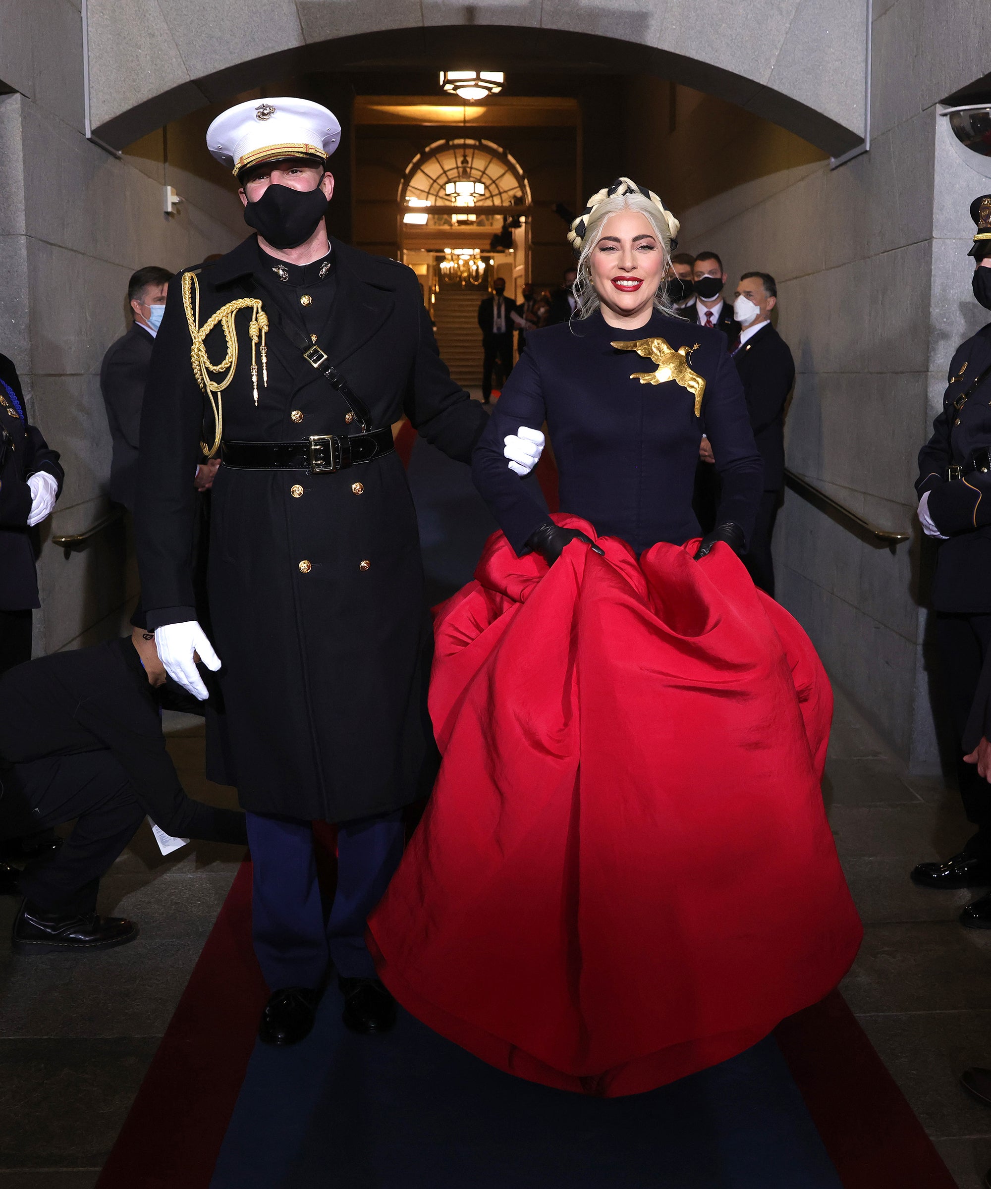 WASHINGTON, DC – JANUARY 20: Lady Gaga arrives to sing the National Anthem at the inauguration of U.S. President-elect Joe Biden on the West Front of the U.S. Capitol in Washington, DC. During today’s inauguration ceremony Joe Biden becomes the 46th president of the United States. (Photo by Win McNamee/Getty Images)
