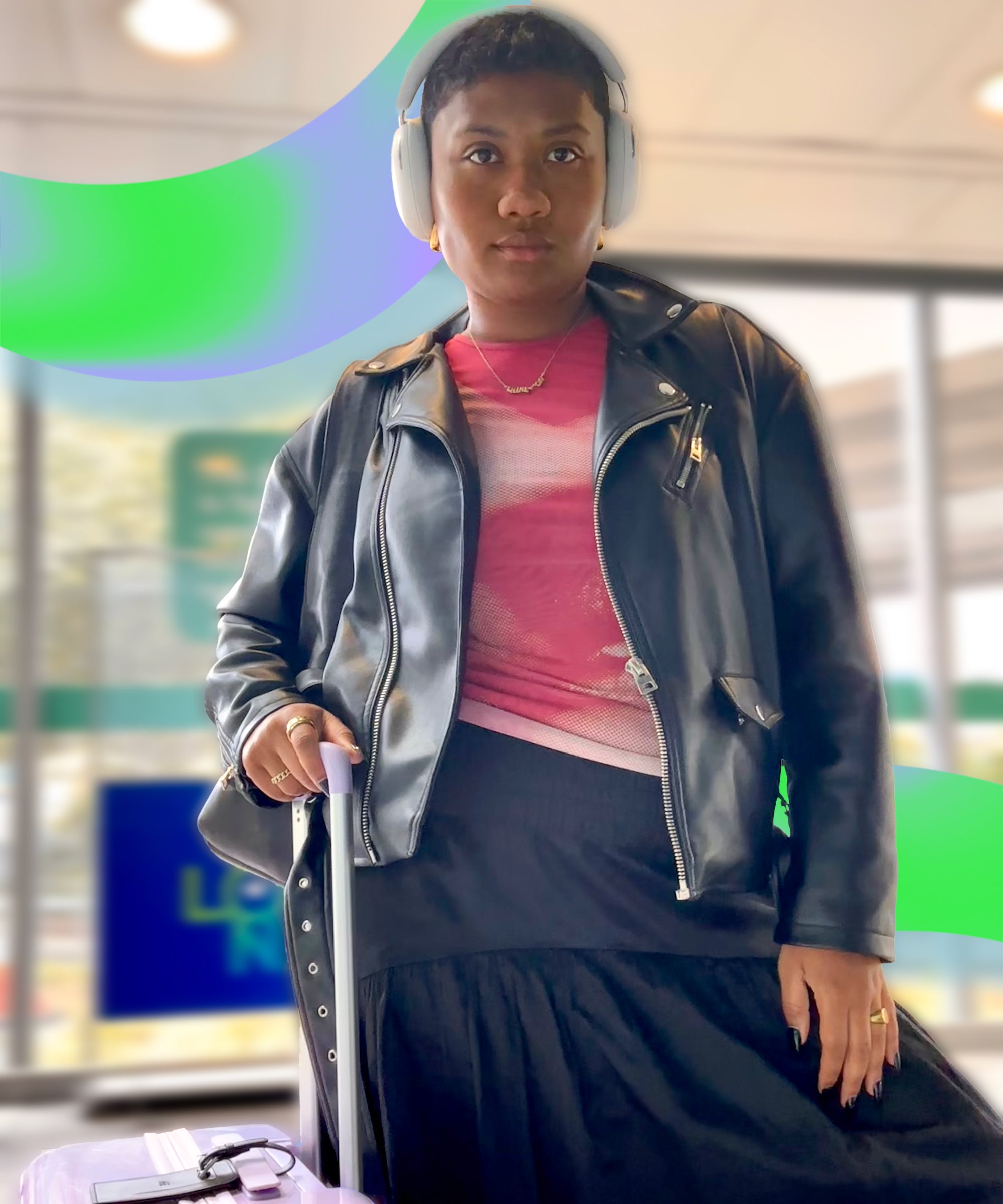 When I asked my colleagues about airport fashion trends, most said they opt for comfort rather than trends, considering more relevant factors like the length of flights and purpose of their trips. Our fashion director Irina Grechko said that her airport outfits depend on whether she’s going on a work trip and meeting people right when she lands (more curated) versus on a personal holiday (more casual). Personally, I like to dress comfortably and practically with yoga pants, t-shirts, sweaters and my everyday jewellery stack to avoid tangling en route. As I write this however, I am en route to a work trip in Berlin, so I’ve dressed up slightly, with an airy maxi skirt, graphic tee, leather jacket and sneakers — all of which I will repurpose during my trip.