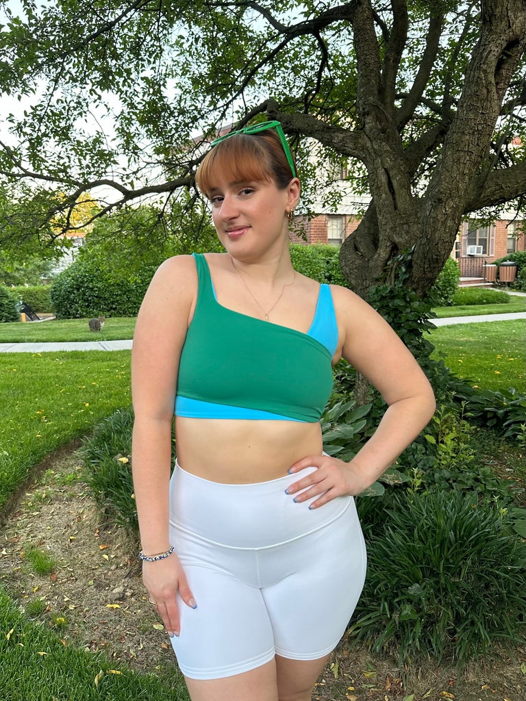 The sports bra was comfortable, flattering, and unexpectedly secure. It offered even more support when I reversed it and layered it over the Scoop and Square Bra (I removed cups from the other bra so it didn’t get bulky) — a plus for when I’m actually working out. I would wear the one-shoulder style solo for stylish athleisure looks and layered for my workouts.