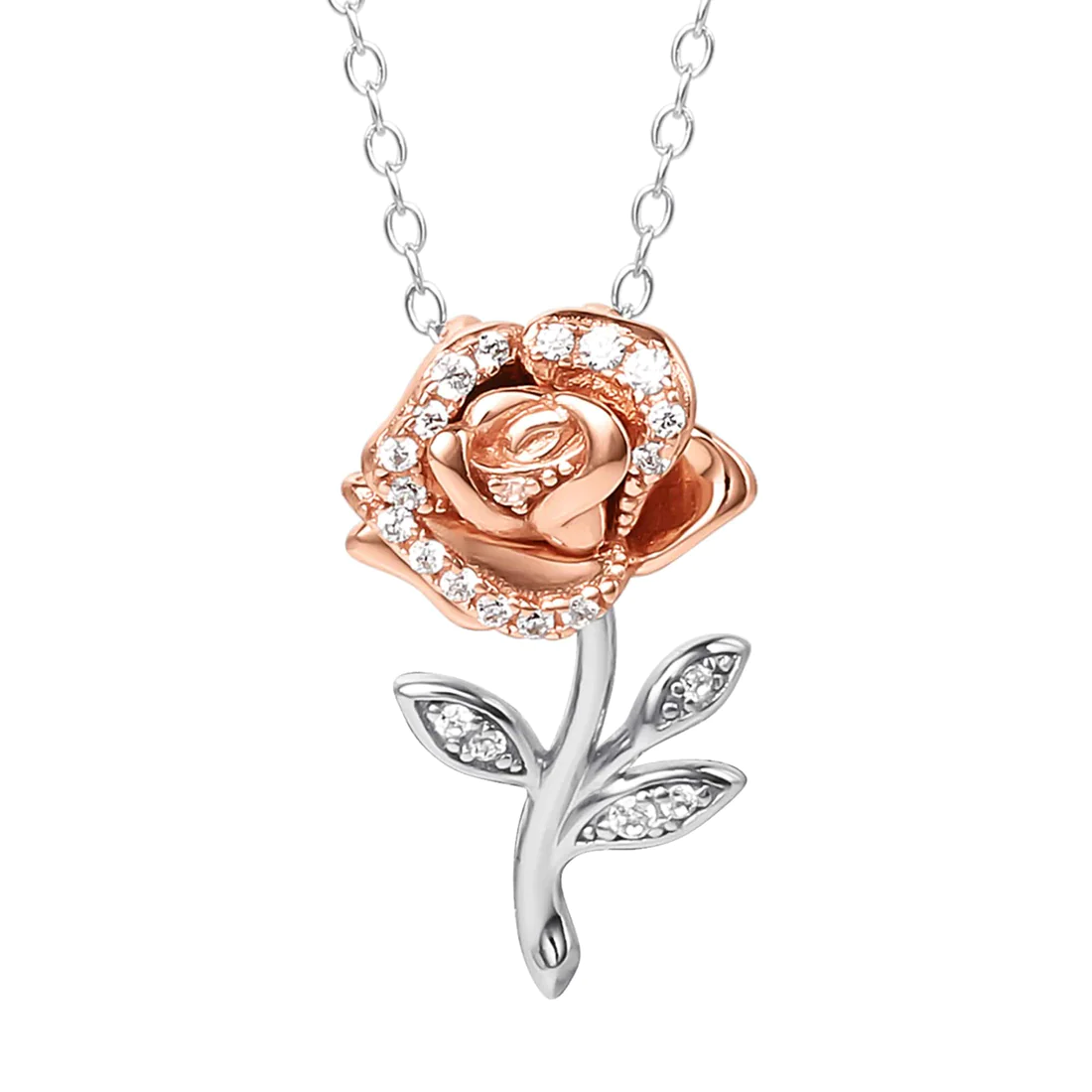 Disney Beauty and the Beast Sterling Silver Rose Necklace