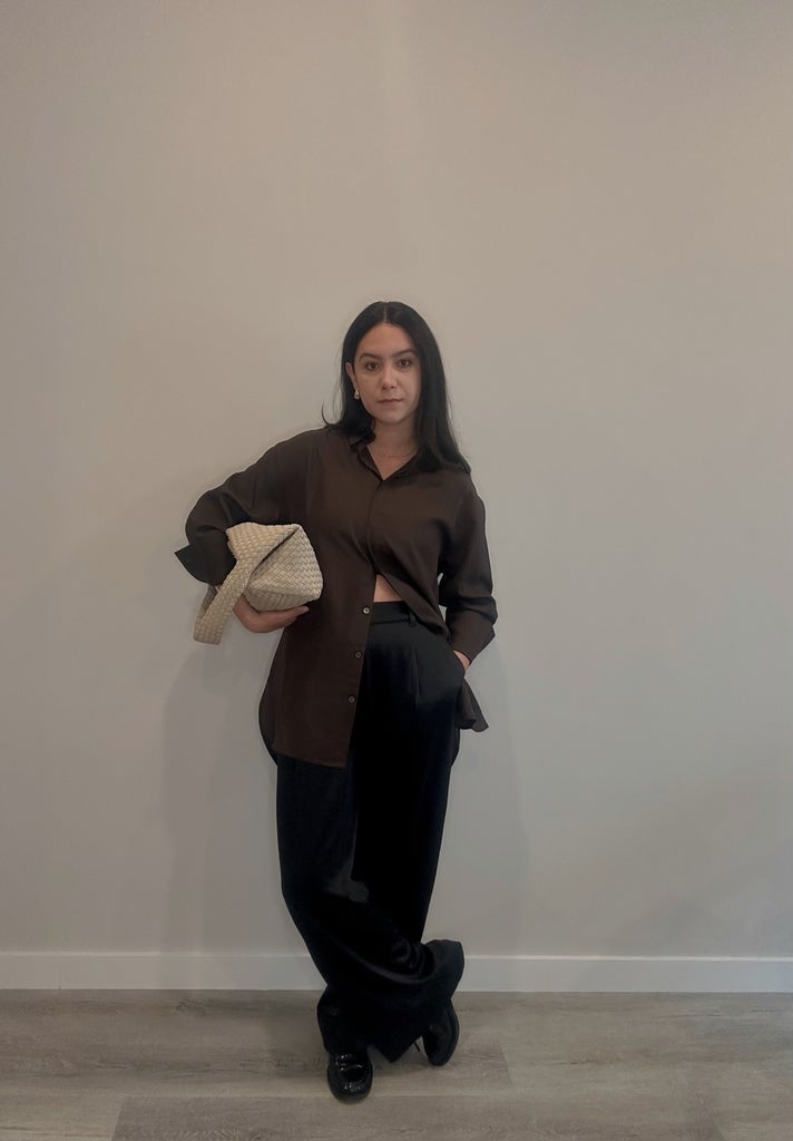 I’ve also styled them for work, wearing a chocolate brown shirt and Oxford shoes for a look that easily translated from work-from-home to in-person meetings.”—Frances Solá-Santiago, Fashion Writer