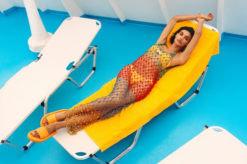 The 73-piece line, out today, blends the summer aesthetic the Spanish retailer is known for with the unabashed boldness and cheekiness of the California-based brand which has made a name for itself thanks to its playful shoes and vibrantly colored apparel. “The root of Mango’s DNA is the Mediterranean, so I kind of thought, What does ‘Mediterranean’ mean to Simon Miller?” Chelsea Hansford, the Simon Miller creative director and CEO, told Refinery29 of the inspiration during the collection’s launch event in Menorca, Spain. “I dreamed up this fisherwoman [muse], and built this under-the-sea world.”