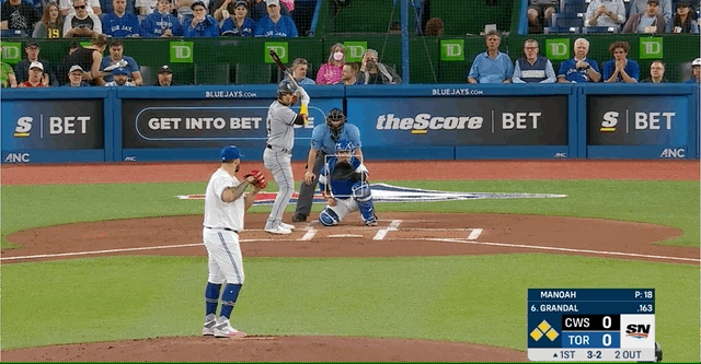Some of Kirk’s most important work came in the first, helping funnel this gutsy 3-2 slider from Manoah to Yasmani Grandal into the zone for a called third strike, leaving the bases loaded to end the inning. Manoah retired the next 16 batters from there.