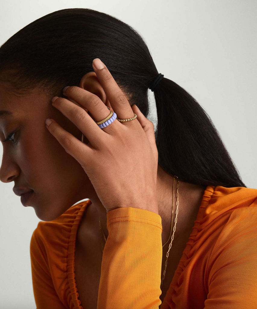 Mejuri knows how to make everyday jewelry make a statement (just peep its diamond collection), and the Charlotte Gelato rings are no exception. Customers can freely mix and match their favorite designs for a stylish look. The gold vermeil rings are now slimmer and have been dipped in cheerful pastel shades of lavender, cream, pistachio, and cappuccino. You won’t have to worry about the colors fading, as it’s treated with Mejuri’s cold enamel coating.