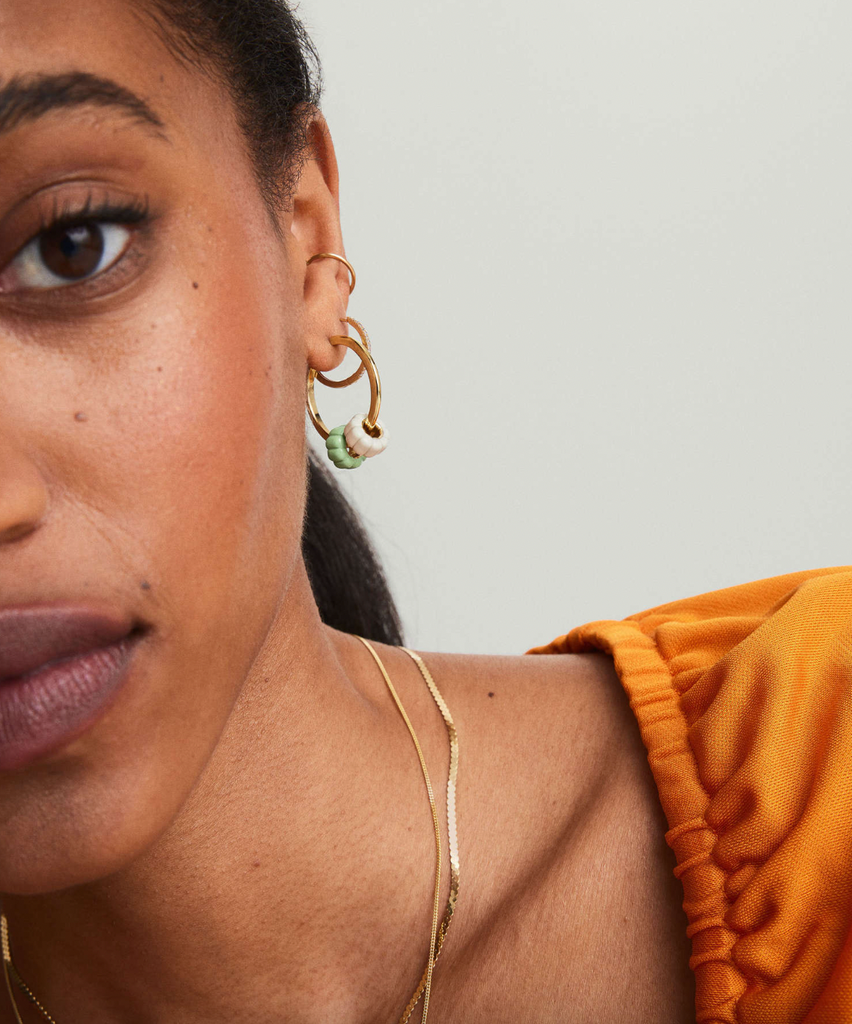 We know Mejuri enthusiasts are loyal and true to the chunky Charlotte Bold Hoops, but they’ve undergone a teensy transformation for the new season. The once statement-making hoops have returned as cute tiny charms you can loop through your favorite gold hoop earrings for a subtle pop of color. Plus, just like the matching Charlotte rings, you can stack these as well — they’re sold as a pair. Loop them both through one earring or balance it with one on each side. The charms are available in lavender, cream, and pistachio.