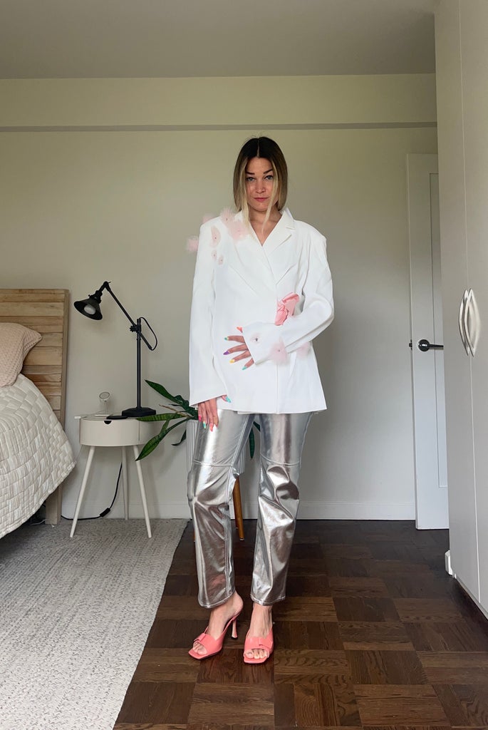 From a look that, yes, will get you crowned the night’s dancing queen to one that wouldn’t appear out of place at a farmer’s market on a Saturday morning, ahead, six ways to style silver metallic pants.