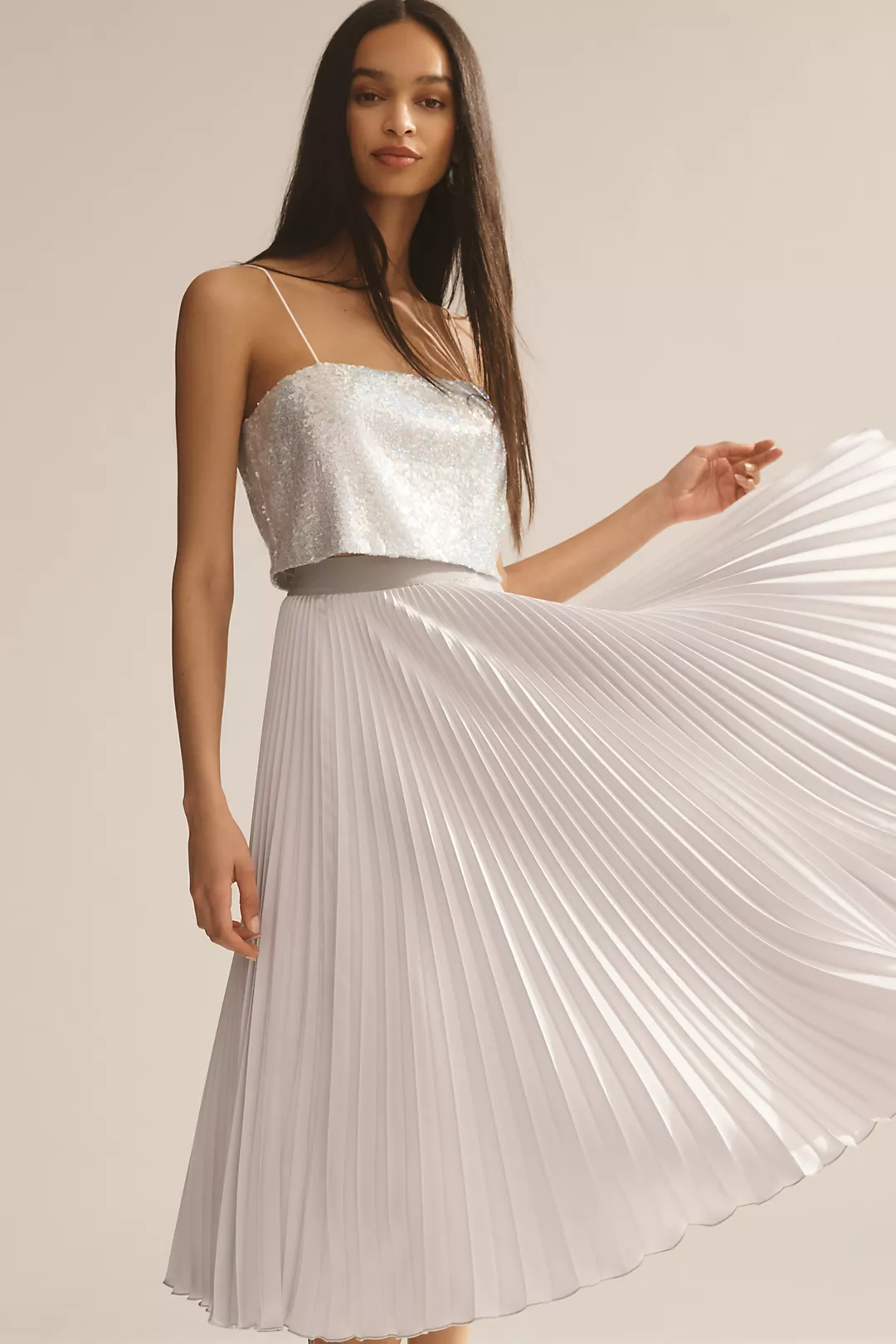 Anthropologie Satin Pleated Midi Skirt, $, available at Anthropologie