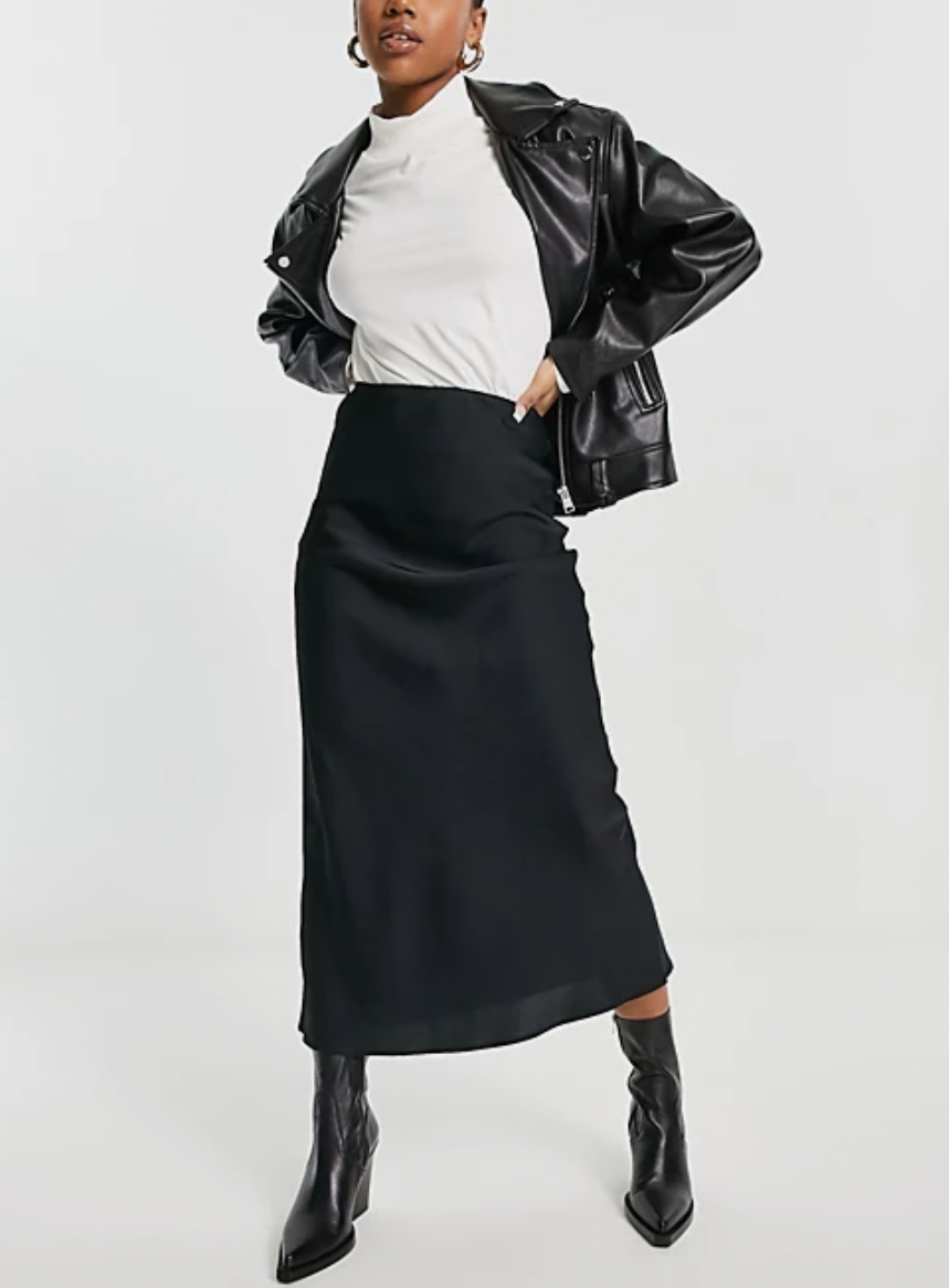 ASOS DESIGN Satin Bias Midi Skirt, $, available at ASOS