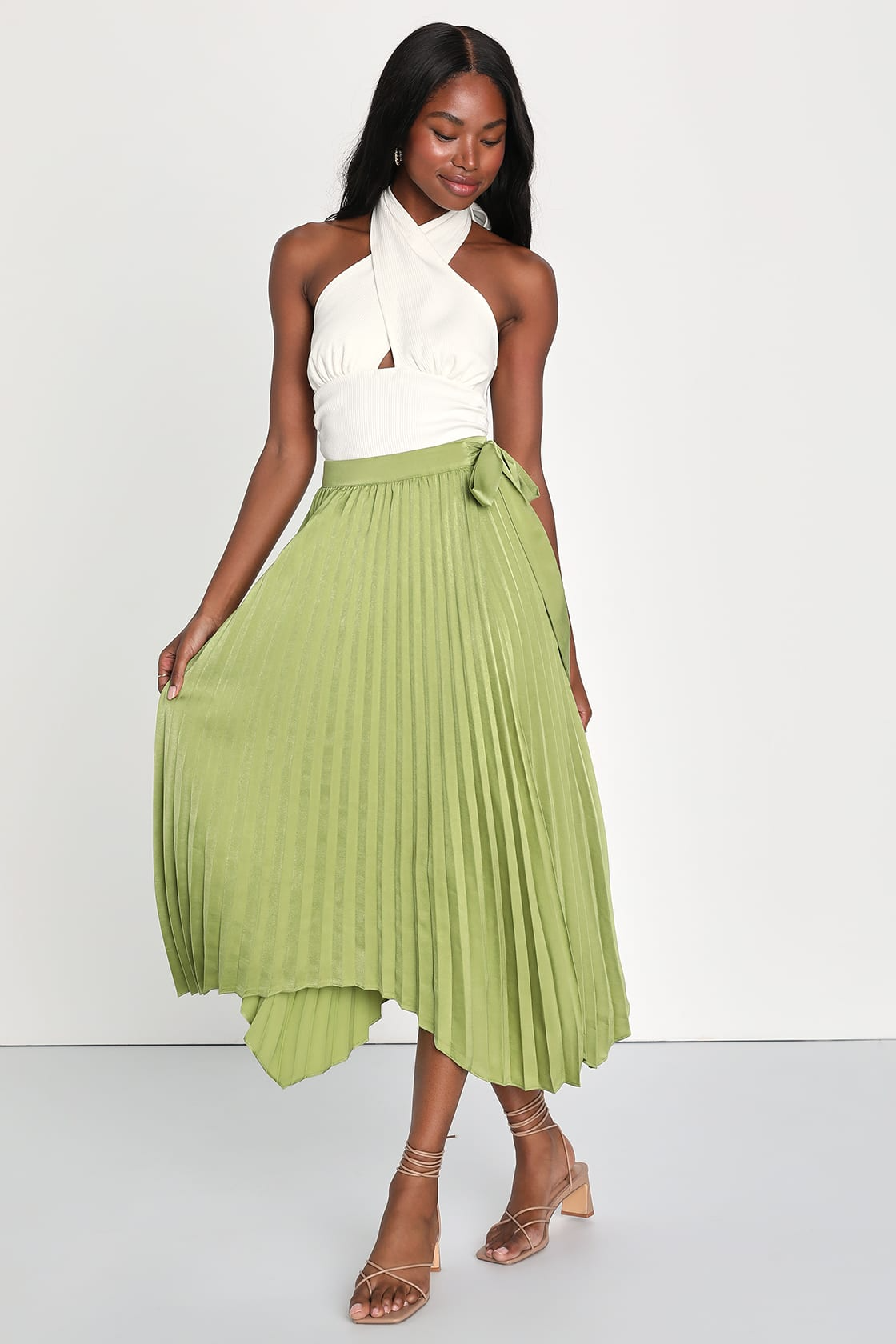 Lulus Springtime Sensation Pleated Satin Midi Skirt, $, available at Lulus