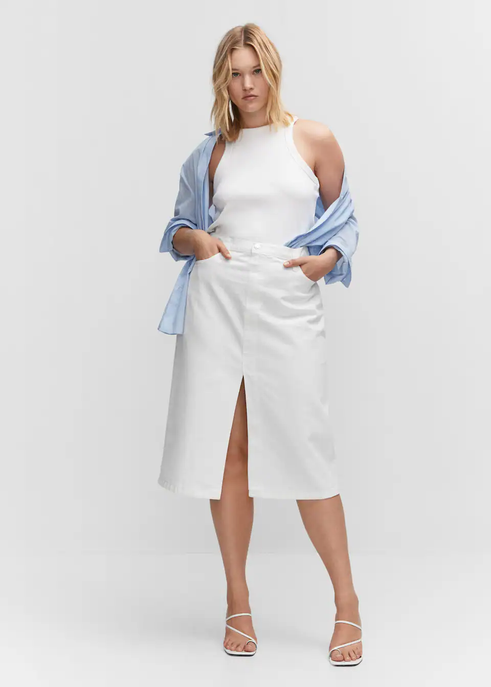 If you want to show a bit more leg than many midi skirts offer, consider going for one with a slit. This flirty detail adds a bit more interest to your look and is perfect for a dramatic, twirling-in-the-wind moment.