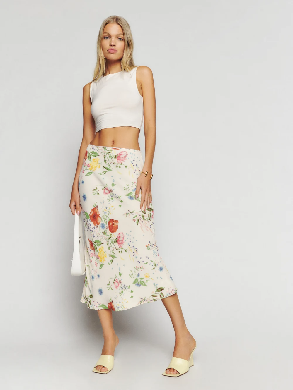 Fitting neatly between the bold, flirty mini skirt and the dramatic, romantic maxi skirt is the comfortable, ultra-flattering midi skirt. Not too short, not too long — it’s just right. The mid-calf length skirt style is versatile, a great day-to-night option, and has become a wardrobe staple, especially for the summer. The semi-casual semi-formal bottoms can easily be dressed down with a crop top and white sneakers or dressed up with a blouse and strappy heels.
